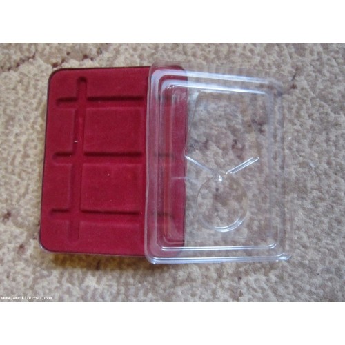 Флокированная коробка с крышкой из прозрачного блистера для медали с пятиугольной колодкой.
