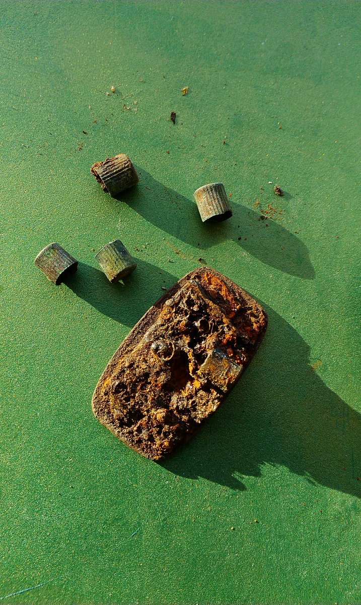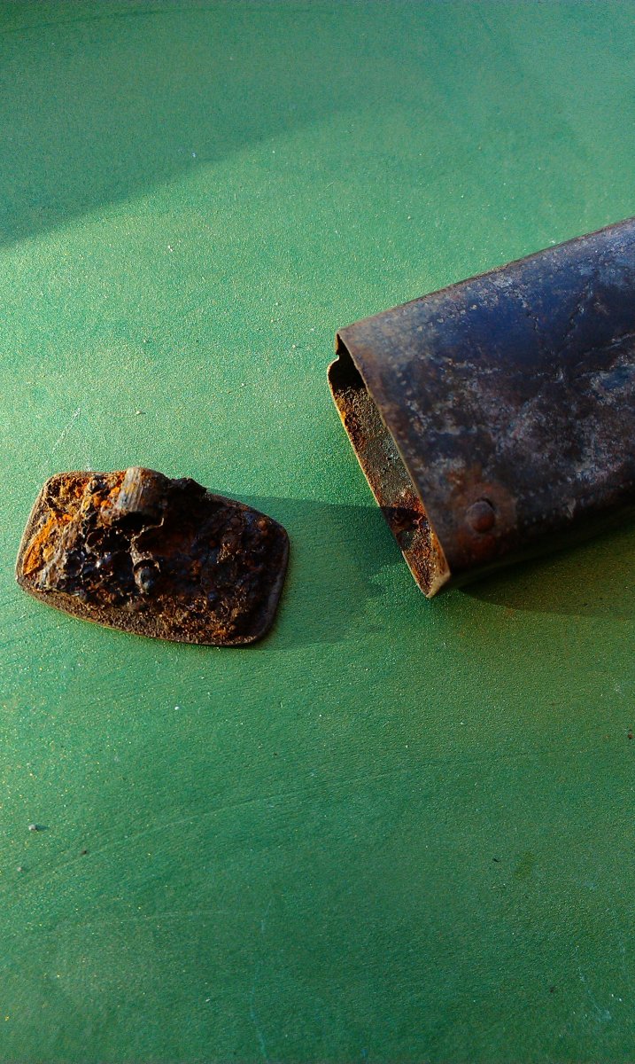 Доброго здоровья! Выкопался такой коробок, на ганс позициях. Понятно, что к вермахту отношения не имеет, хоть и вся сопутка гансовая. Коробка - латунь, был механизм открывания. Размер капсюлей 5 на 5мм. С уважением