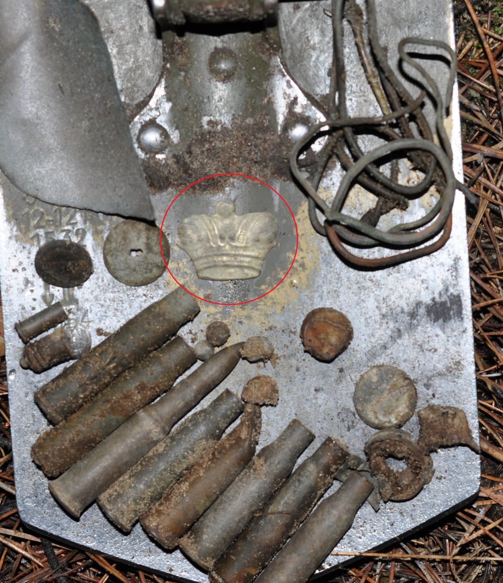 Здравствуйте . Можно предположить что это бывший вензель с эполета . https://meshok.net/item/95086443_короны/bid#&gid=1&pid=3 Посмотрите нет ли с обратки остатков крепления ? В любом случае судьба была жестока и предмет утерян . С уважением .