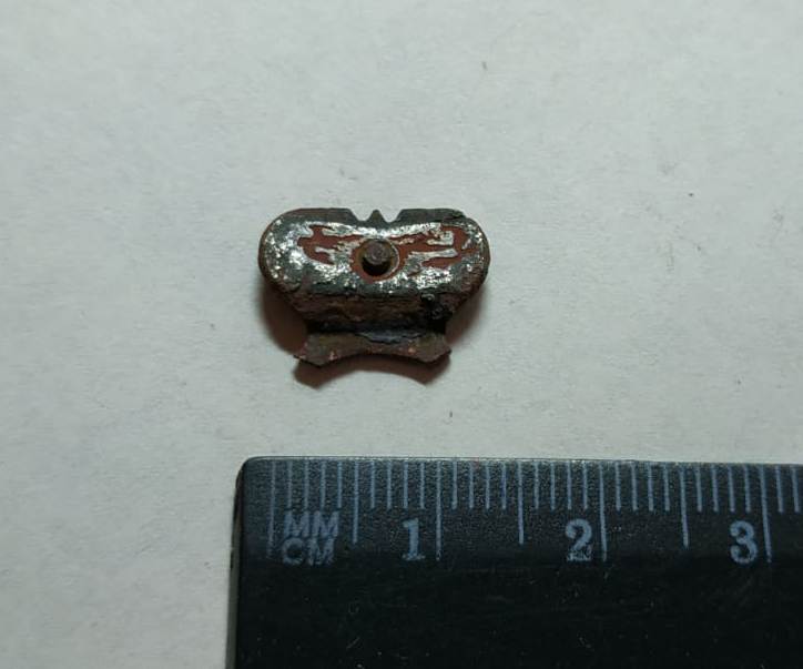 Доброго. Копнулась такая деталька, похожа на коронку, вроде бы есть 2 обрыва снизу , т.е. возможно держалась на двух головах. Сзади коронки крепёжик наверно был. От какой кокарды корона, может у кого есть такая в зборе или подкиньте ссылочку? В иннэте подобного не нашлось. А может петлица, погон? Спасибо.