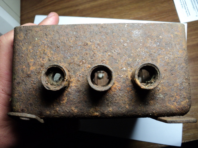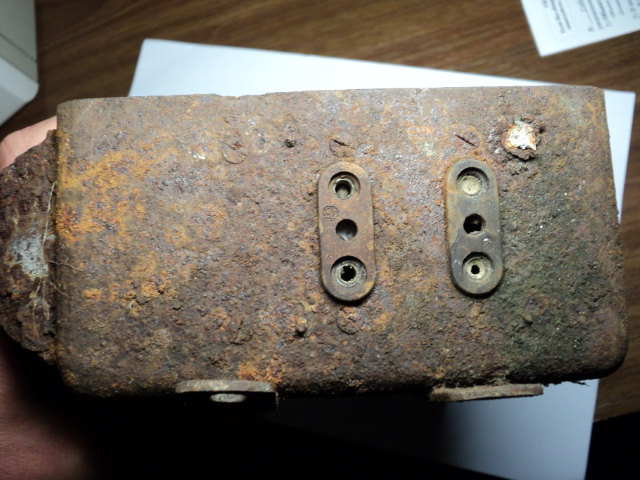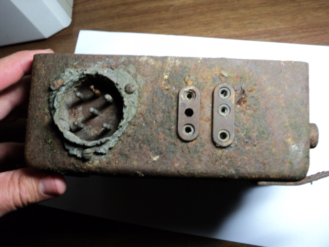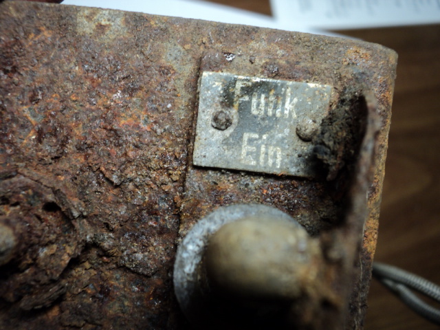 Выкопали остатки корпуса немецкой рации. Сохранилась только одна шильда. Интересно, что за модель?