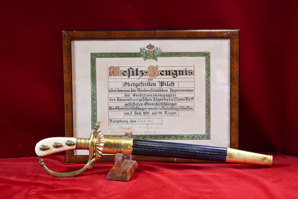 Технология примерно такая : 1. Покупается хирш без желудей за трехзначную сумму . 2. Вставляются желуди и в сумме нарастает нолик . 3. Вставляется значек и цифра растет вдвое . Чтоб не искать оригинальный значек могут целиком новую накладки изготовить . В обсуждаемом поленились поискать дорогой клинок , вероятно потратив пару сотен баксов на значек решили и так сойдет . Причем на этих фотах из аукциона желуди от люкс модели на глатт рукояти . Торговцы они такие . Да и за коллекционерами следить нужно , им тоже хочется семью кормить
