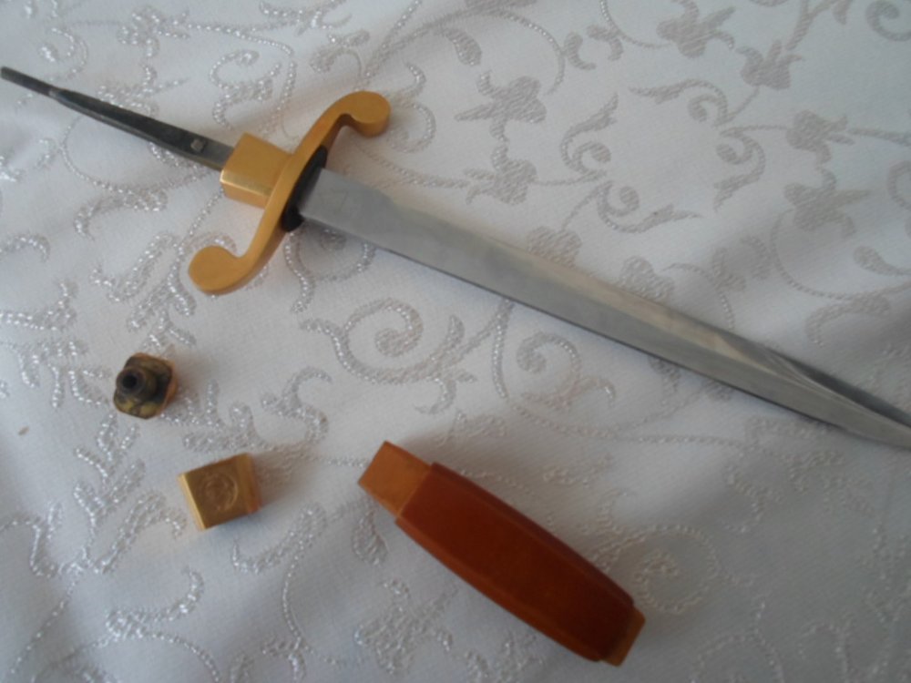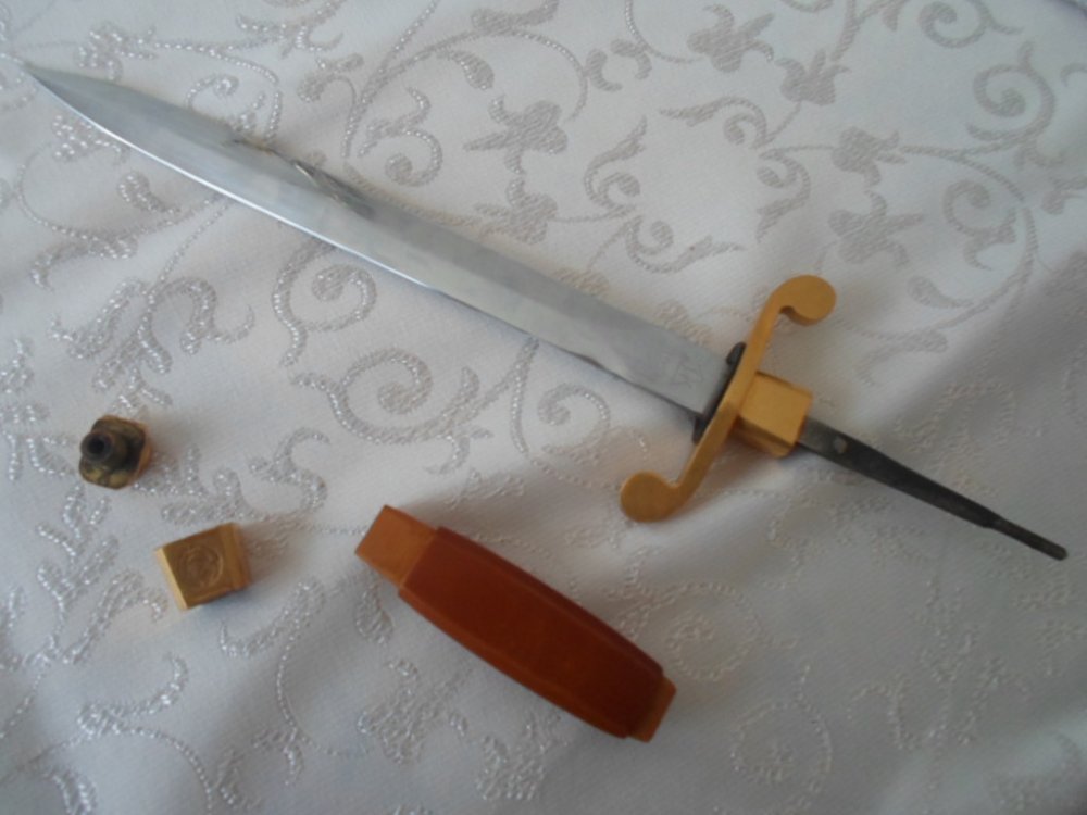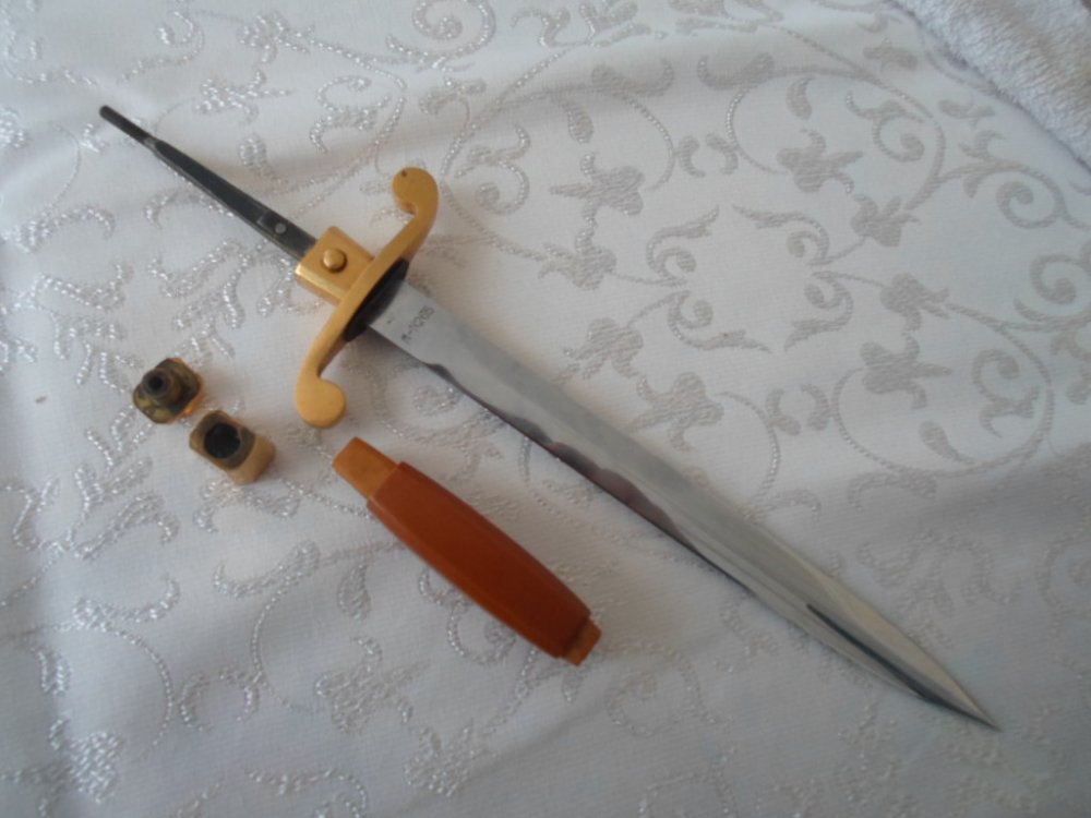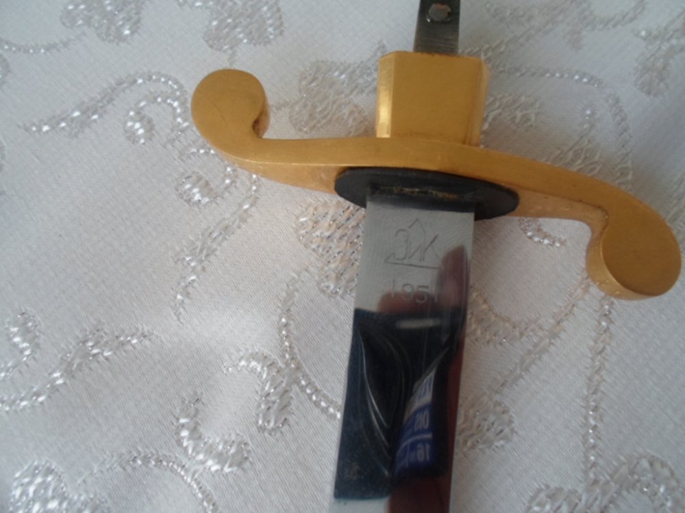 Поддержу эту мысль... Для устранения дефекта ножен серьёзным образом, нужно тоже искать донора. Таким образом покупателю данного "летуна" в комплект требуется ещё и до предела забытованный "общеевойсковик"...