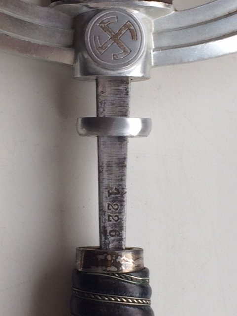 Навершение у меча выглядит больше. Витки на рукояти надо посчитать.. Держал в руках как то 1модель Пума так он выглядел короче чем обычный. Кортик ТС сборный так это точно. только вот от чего? Если бы колхозили подогнали бы хвостовик и обрезали, дорезав резьбу.