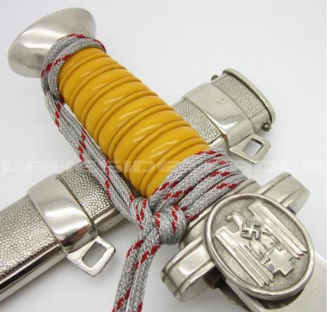 пример с дилерского сайта. темляк описывают как после война.Finally included is a nice post-war portepee. Шнурок возможно заменить но там стальная проволока скобой. как то мне удалось вытянуть ее ушко узконосами)) фото для примера из инета. Интересно бы взглянуть на закрутку. Навершение уж больно чистое в сравнении с гардой . Может у кого есть фото со светлой рукоятью для примера? с ув