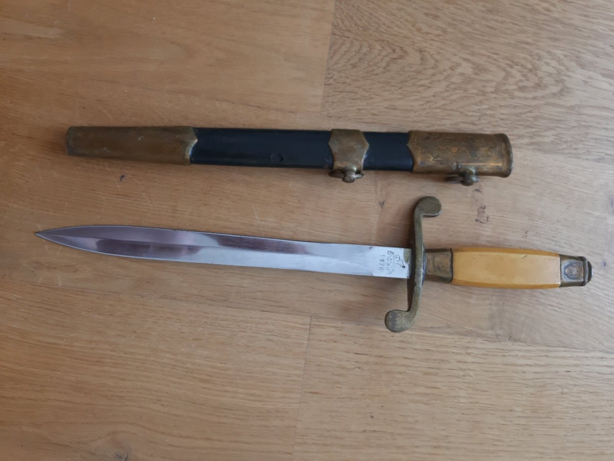 Доброго здоров'я, побило його за 44-рокі не погано, в такому стані в районі 1500 грн. Чистити і мити всю латунь треба і на піхвах теж, рукоять то вже на Ваш вибір, можна лишити то що є, має вигляд що був у використанні. З Повагою.