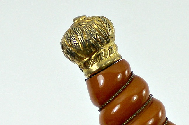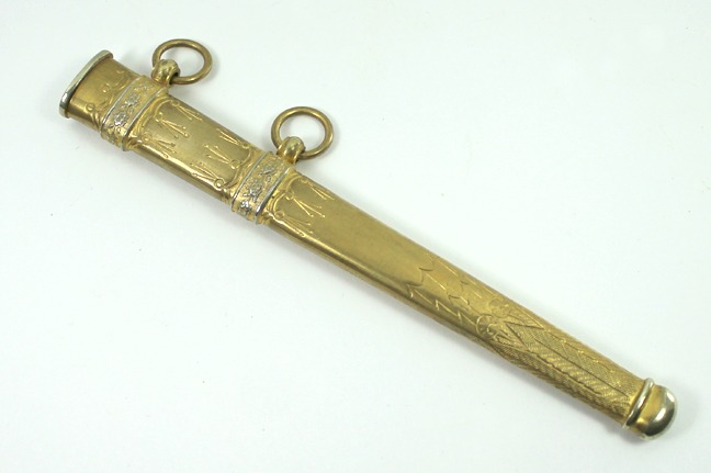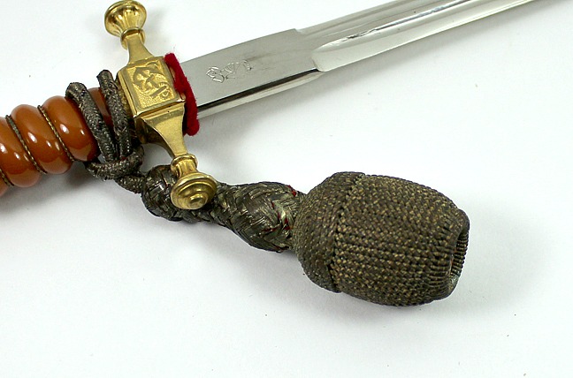 Надеюсь, что автор темы разрешит продолжить начатое им. Ещё один неординарный предмет от Виттманна. И тоже из морской тематики. Судя по навершию и типу клинка более поздняя версия, чем предыдущий. Нестандартный (укороченный) темляк, оригинальные по-исполнению ножны, позолота и отличная балансировка, дающая возможность носить сей предмет - так указано в описании. На мой взгляд - это ещё одна загадка, дающая повод к размышлению: для чего использовались такие кортики?