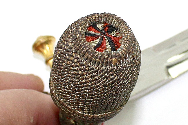 Стоит эта красота 650 долларов, кортик правда без ножен, и навершие имеет следы вандализма (корона без верней части).