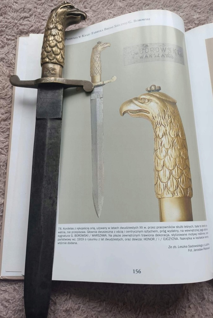 Доброго! Корделяс лесничего. За оригинальность не скажу. Довоенные модели производства Г. Боровского выглядели так: https://archiwum.allegro.pl/oferta/kordzik-borowski-2-rp-i10576180402.html Обр.1930 года: https://archiwum.allegro.pl/oferta/kordelas-wyzszych-urzednikow-lesnych-wz-31-iirp-i6867546317.html А вот образца 1996 г. для сравнения: https://archiwum.allegro.pl/oferta/kordelas-lesnika-polskiego-wz-96-i8247071100.html Клеймо на предмете тоже не нравится (субъективное мнение). Возможно, камрады ещё выскажутся, мне в теме видится застаренный обр.1996г. С уважением,