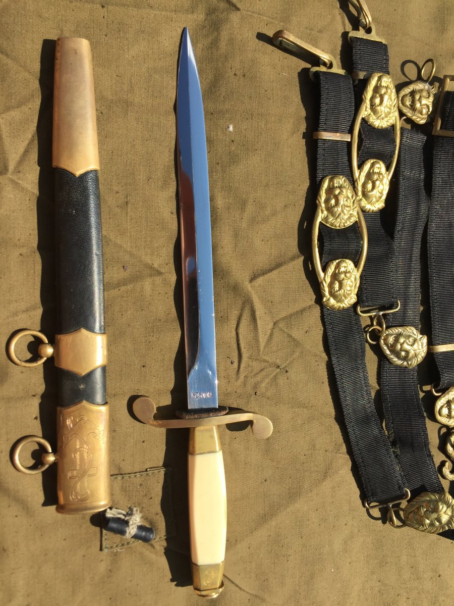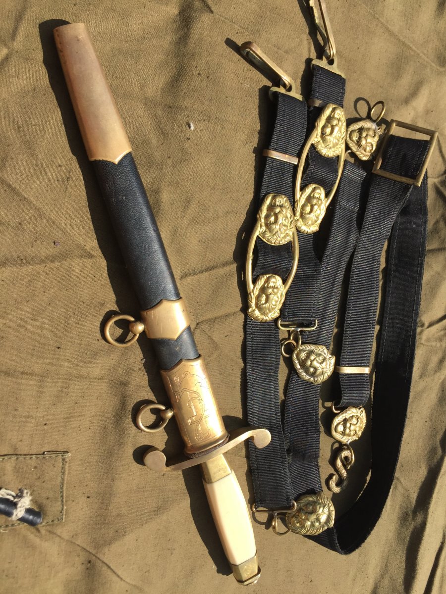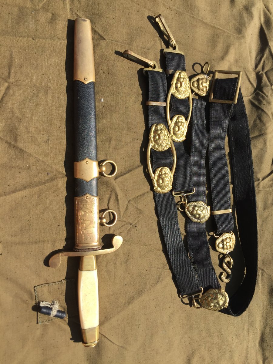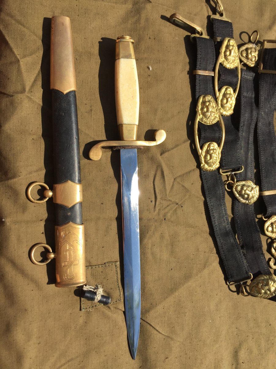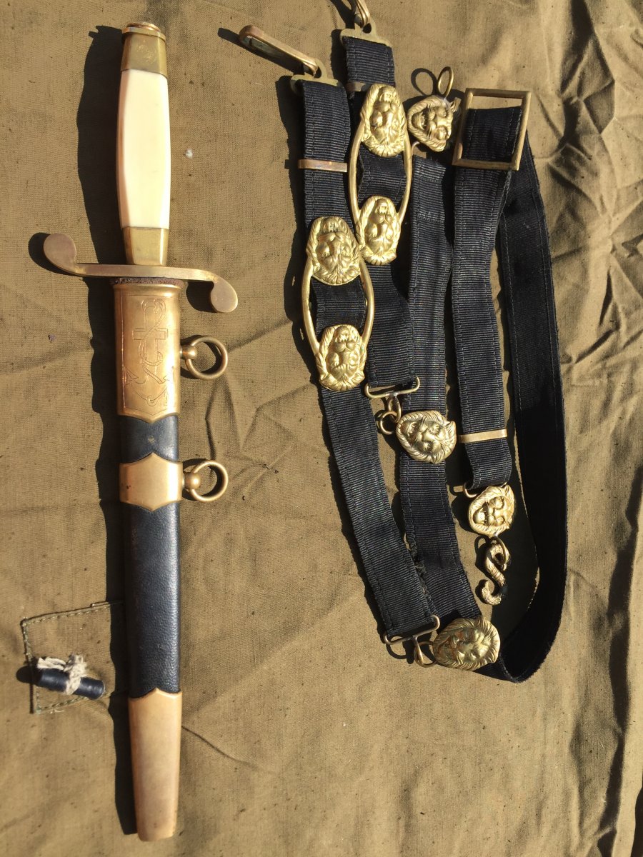 Продам кортик офицерский морской образца 1940г.(ранний безкнопочник).Номер 010324,Состояние:на лезвии видны следы от корозии,на гербе 11 республик,ручка похоже на слоновую кость или бивень моржа,все видно на фото!Историю этого предмета не знаю,таким он ко мне попал!В комплекте идет вахтенный подвес!Цена за все 6000 грн.