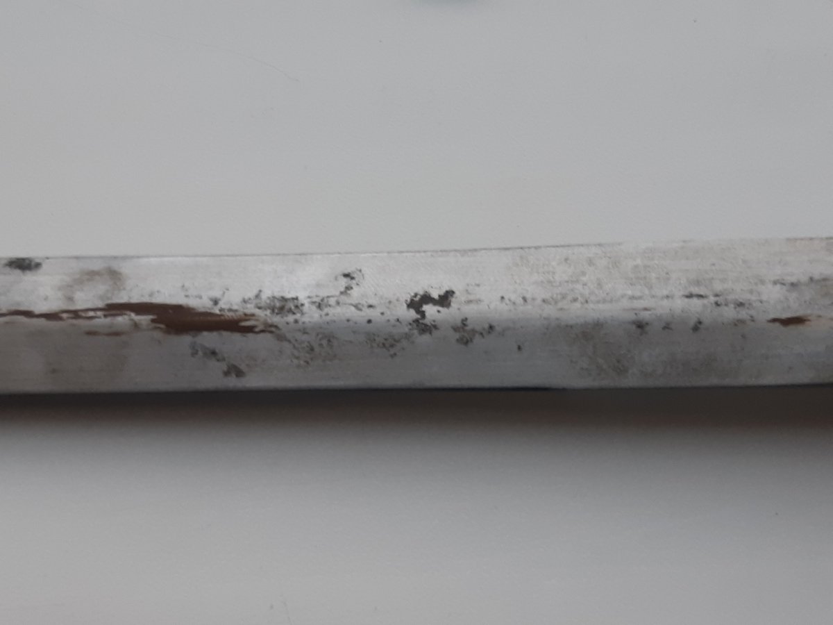 Приветствую,попался вот такой кортик,хотелось бы его обсудить,не моя тема,просто те что ранее попадались были с кнопкоЙ,а тут нету,номер 009024 тоже какбы маленький,темное на лезвие какойто вонючий солидол,га обратке надписей никаких не вижу.Помогите кто в теме.Спасибо.