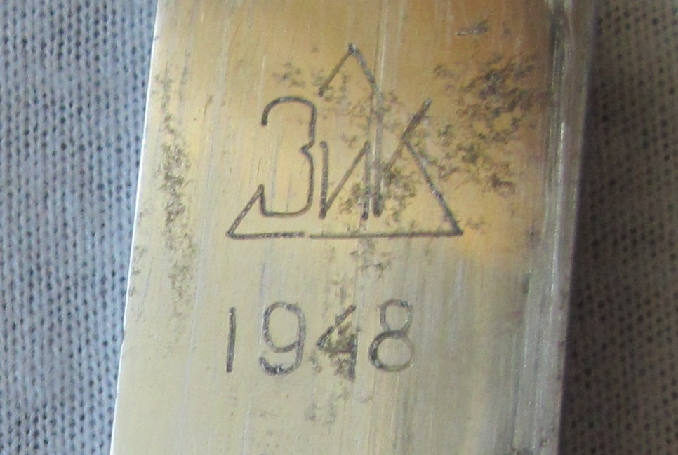 Добрался до меня кортик, послуживший ветеран. Потрепанный, но непобежденный. Кортик ВМФ СССР, ЗиК, 1948 год. Специально сделал фото клейм приемки. Под пластинкой защелки на хвостовике, если я правильно рассмотрел, клеймо 1948.