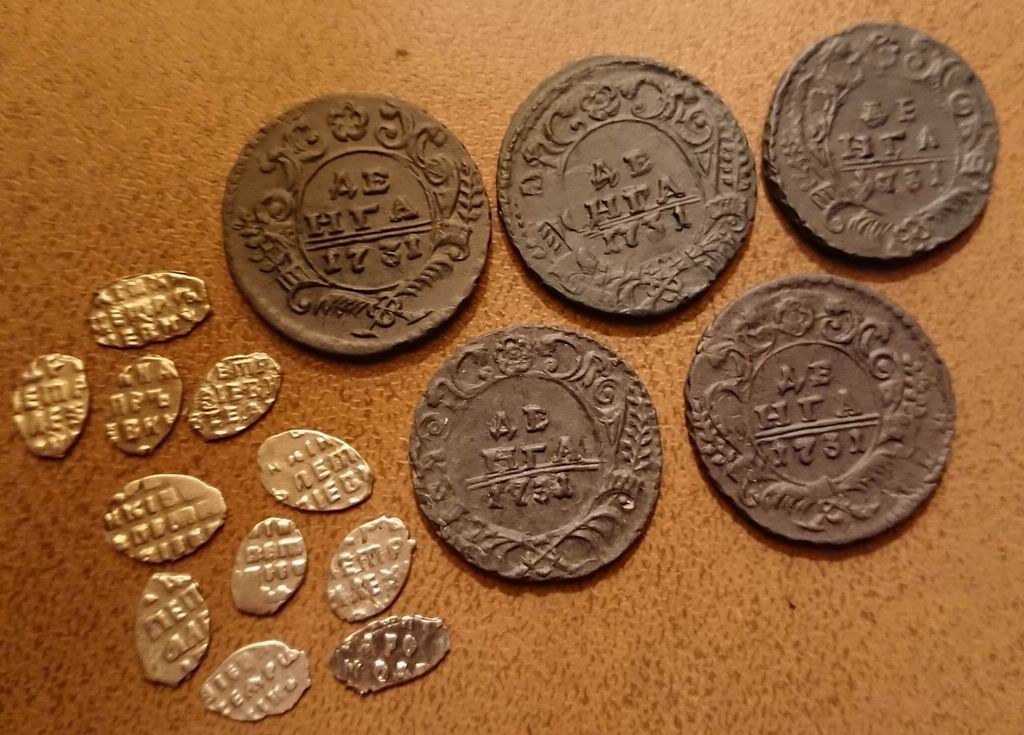 Всем привет. Попался кошель монет. Подскажите пожалуйста по монеткам и их стоимости. Разве в 1731г. чешуя была в обращении? и до какого года она встречается?