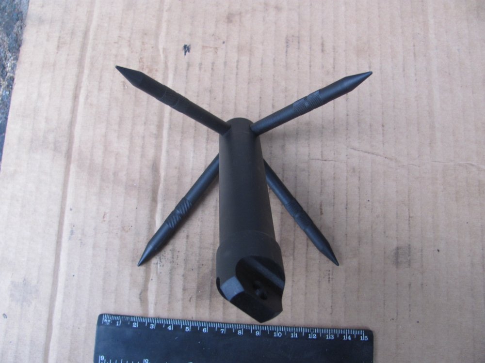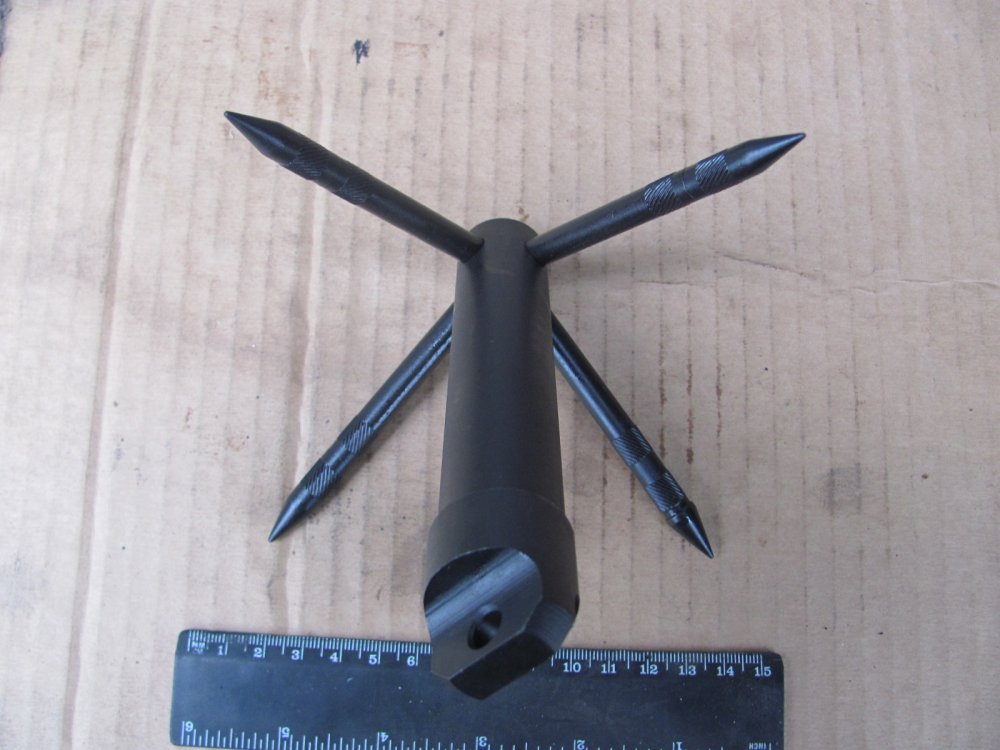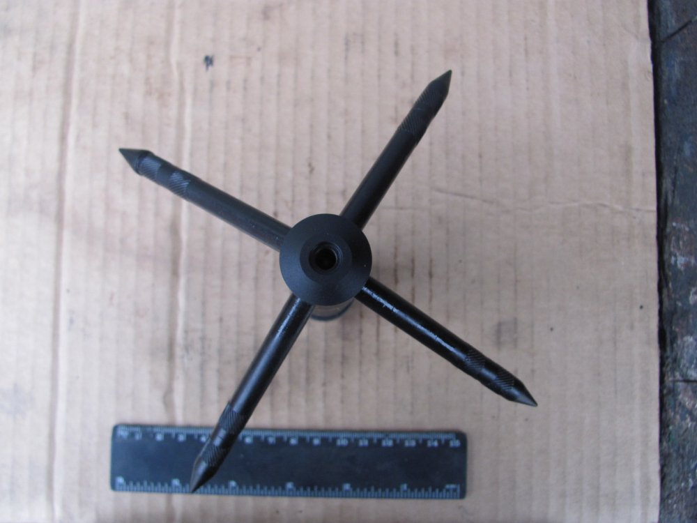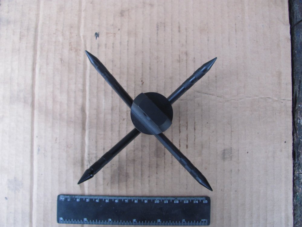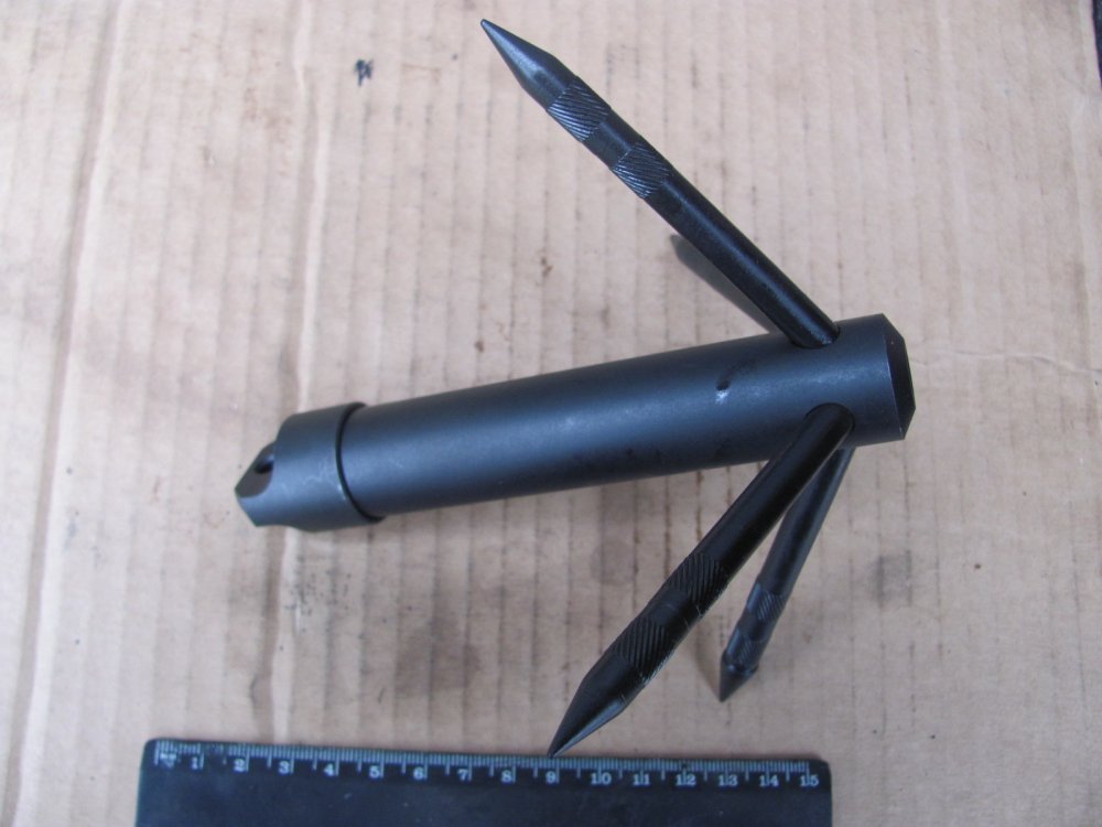 Итак. Немного об опыте эксплуатации для наглядности. Первоначально о задачах. Для эффективного стаскивания мин всех типов кошка должна иметь возможность не только подцепить мину, но по возмодности перевернуть/протащзить определённое расстояние от места установки. Таким образом вызвать стопроцентный подрыв элемента неизвлекаемости (мины-сюрприза), если таковой установлен под основной миной. На снимке - кошка и противотанковая мина ТМ-62П3. Высота корпуса мины - 6,5 см. На снимке видно, что из-за малой длинны лучей и их расположение под острым углом кошке не удасться зацепить мину таких размеров. Кошка просто соскальзывает с корпуса мины. Кроме того кошка норовит свалится набок - на одном луче она стабильно на грунте не держится. На снимке - противопехотная мина ПМН-2 и кошка. Здесь изображён оптимальный вариант, когла луч мины подведен под саму мину. Но такой способ крайне опасный, поскольку нет гарантий, что под миной не лежит мина сюрприз, либо мина может иметь наклонный датчик цели (реагирующий на наклон мины). На снимке кошка установлена несколько дальше от мины (на месте где лежит кошка делается подкоп в грунте около мины). Но опять же, из-за расположения лучей под острым углом кошка своим основанием ложиться на датчик цели, что чревато случайным подрывом. Поэтому в данном случае кошку следует ложить несколько сбоку от мины, что повышает безопасность, но уменшает вероятность стаскивания мины с первого раза. По существу рекомендую (не претендуя на истину в последней инстанции). сделать кошку четырхелучевой. Подобная конструкиця позволит устанавливать кошку на грунт стабильно и единообразно, что обеспечит успешное стаскивание мин; угол наклона лучей должен быть изменен - лучи установить под более тупым углом, чтобы обеспечить зацеп мин с более толстым корпусом; желательно сделать лучи изогнутыми, но тогда в данном случае кошка утратит своё преимущество в виде компактности, однако зацеп мин будет стопроцентный. Здесь уже решать производителю, что приоритетней. П,С. Прошу прощения, что без чертежа. Пока готовится. Я хотел сделать всё сразу, но решил разместить фото раньше, чтобы тема не остыла. П.П.С. Всех прошу присоединится к обсуждению.