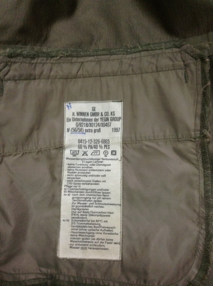 ЛОТ № 3 Продам контрактный оригинальный комплект - утеплитель BUNDESWEHR для костюма Gore-Tex или парки, состояние курточки оцениваю на 4, так-как этикетка стёрта и не видно размера, а штанов на 5. Размер III (52-54). Цена за комплект 300 грн.