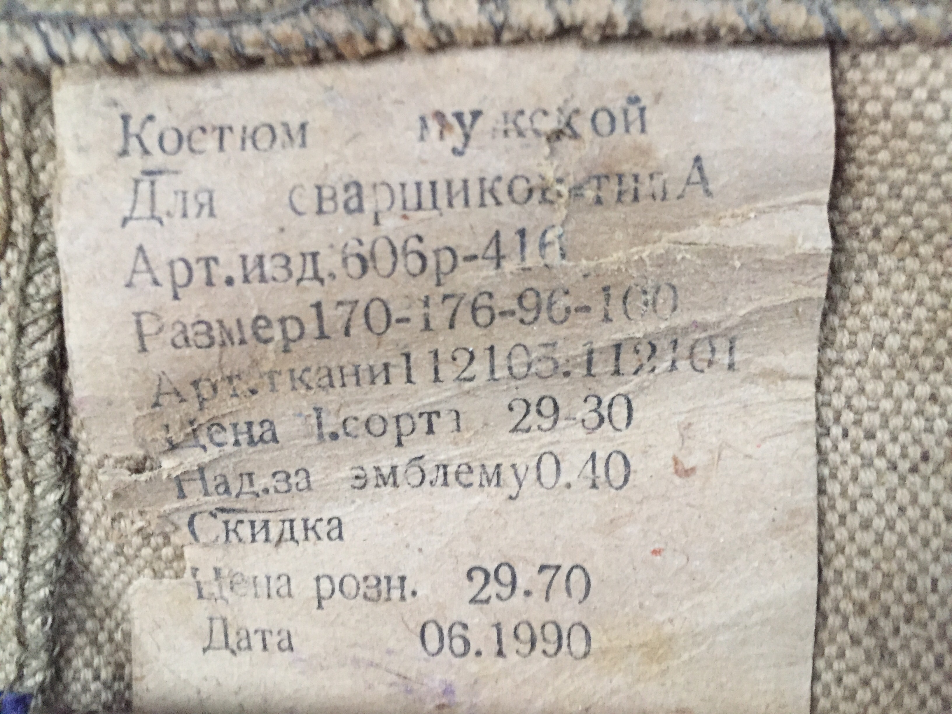 Костюм мужской для сварщиков тип А. Состояние: новый, с этикеткой, не использовался, следы хранения. Размер: 170-176-96-100. Материал: брезент, эмблема «Тр»(по классификации СССР - для высоких температур). Брюки в зонах подверженных большему износу усилены дополнительными накладками из ткани. Под руками есть прорези для вентиляции. Обмеры: куртка, ширина плеч - 50 см, под руками(полуобхват) - 60 см, длина рукава от плечевого шва - 58 см, длина по спине от ворота вниз - 69 см, ширина по низу куртки(полуобхват) - 57 см. Обмеры: брюки, пояс(полуобхват) - 53 см, длина по наружному шву - 103 см, длина по внутреннему шву(шаговый шов) - 72 см, посадка спереди/сзади - 34 см/37 см. Стоимость: 650 грн. Оплата на карту Приватбанка. Пересыл Новая почта, Укрпочта. Оплата за пересыл на покупателе. Вопросы и предложения в ЛС. С ув.