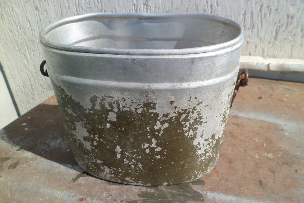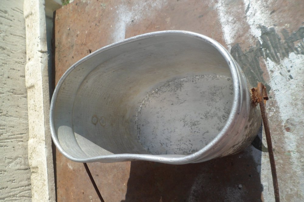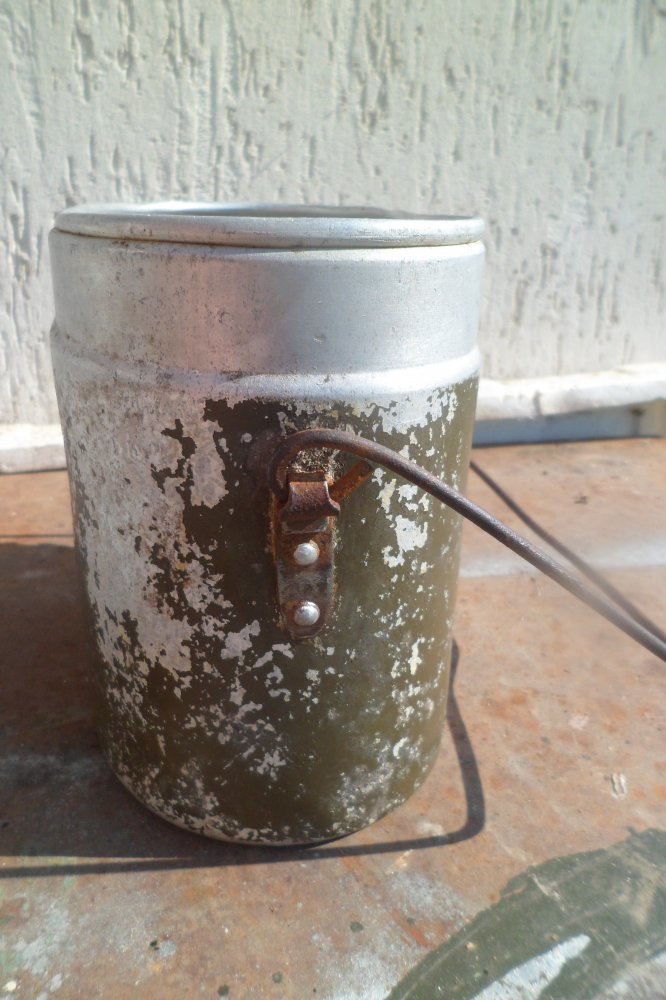 Котелок без крышки,уши стальные.Дыр и свищей нет.Состояние на фото.Цена:160гр.