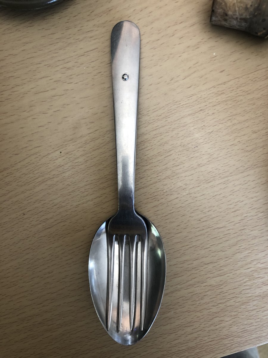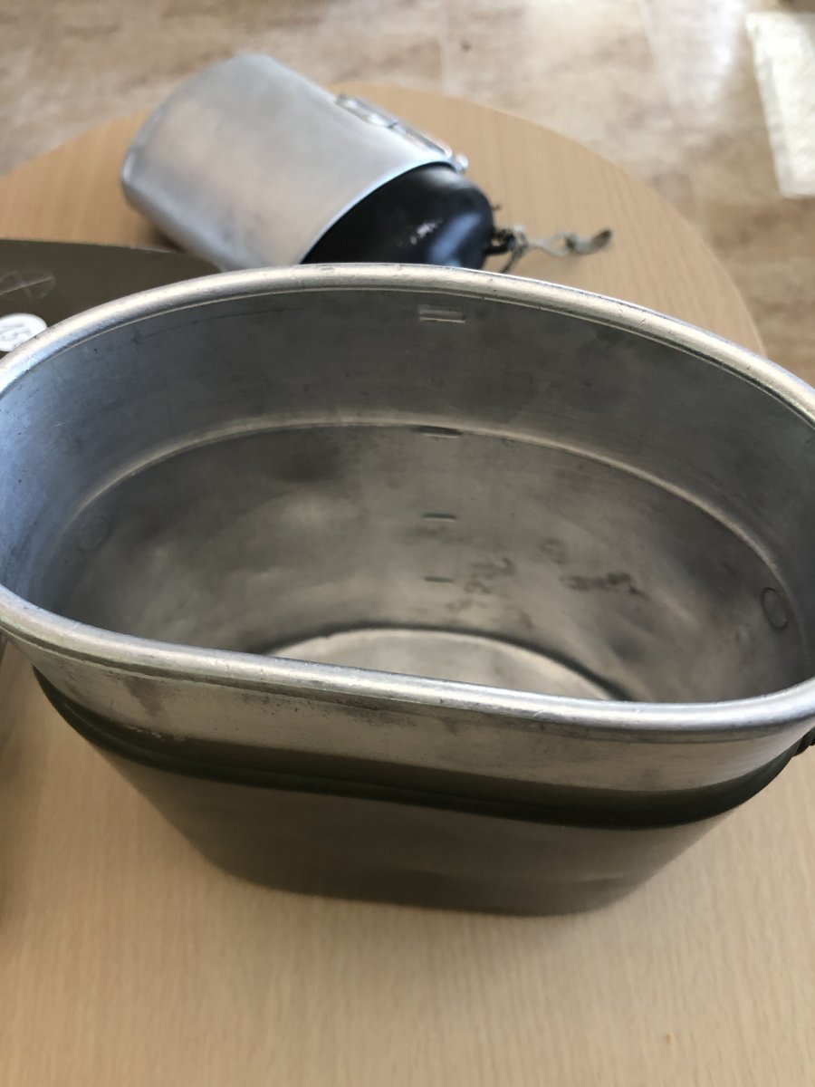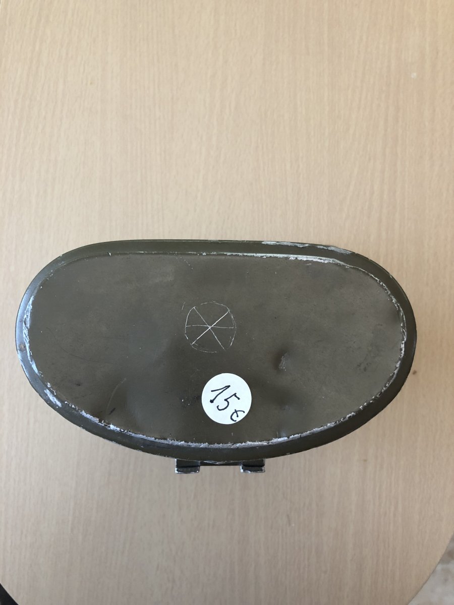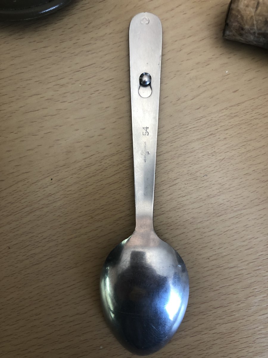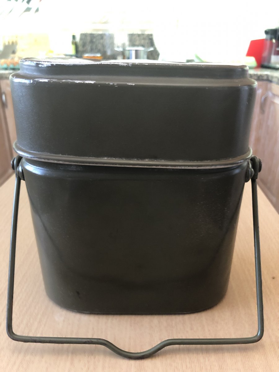 Усім доброго дня! Камради,допоможіть визначитись з цим «котлом». Придбав на барахолці у Іспанії. Всередині,бонусом невелика фляжка,що входить у стакан з відкидними ручками,та ложко-виделка,судячи з клейм,швейцарська. Цікавить виробник самого котла,та роки виготовлення. Усім дякую!