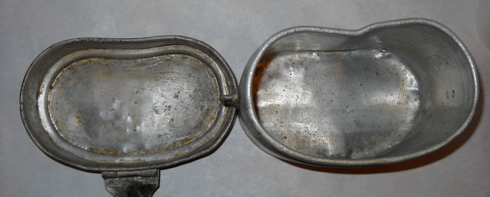 Камрады,к вашему вниманию котелок вермахта с репарационной крышкой "Apkaustas-48". Клеймо на котелке "H.W.S.D.35".На дне котелка одна дырка которую можно запаять или заклепать,что лучше.Состояние смотрите по фото.Дырка видна на двух последних фото. Цена 120 грн.+ пересыл. Резерв в теме,вопросы в личку. P.S.Забыл указать,что котелок подписной.Плохо просматривается надпись в двух местах вроде как "Loimie Biacher".