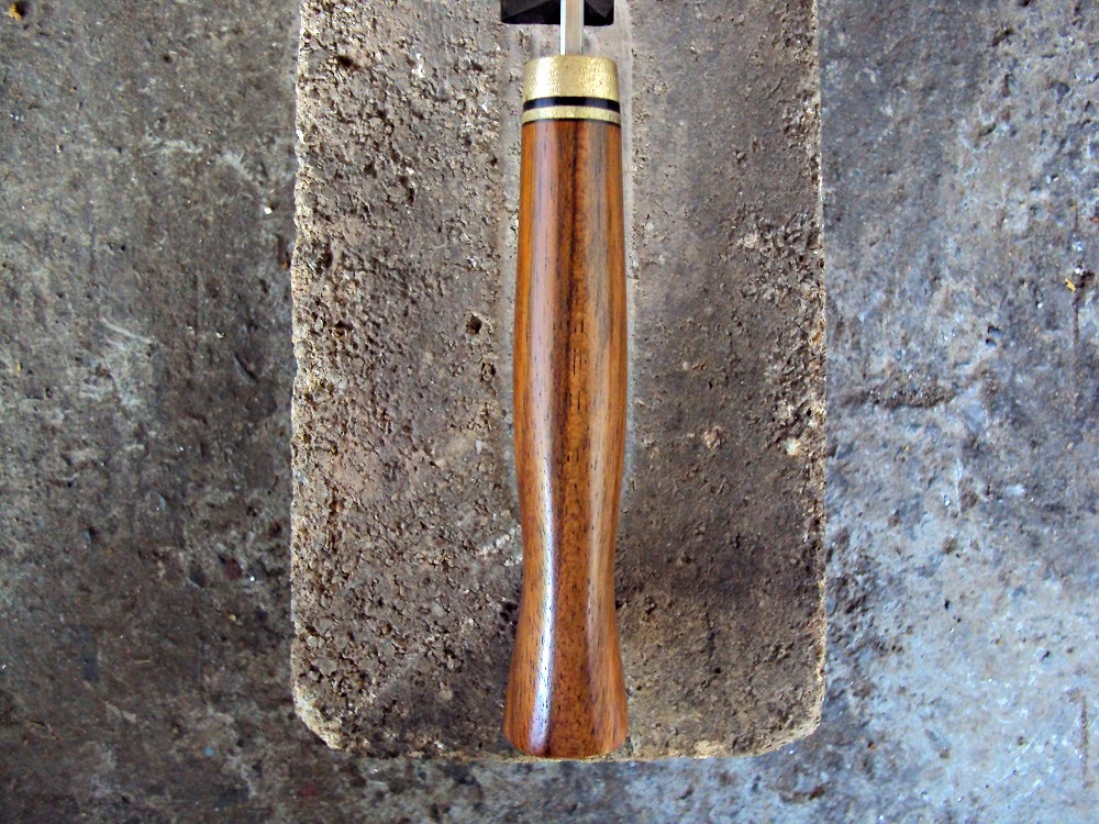 Рукоять:орех,латунь,фибра,обработан даниш,карнаубский воск