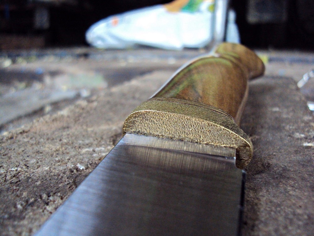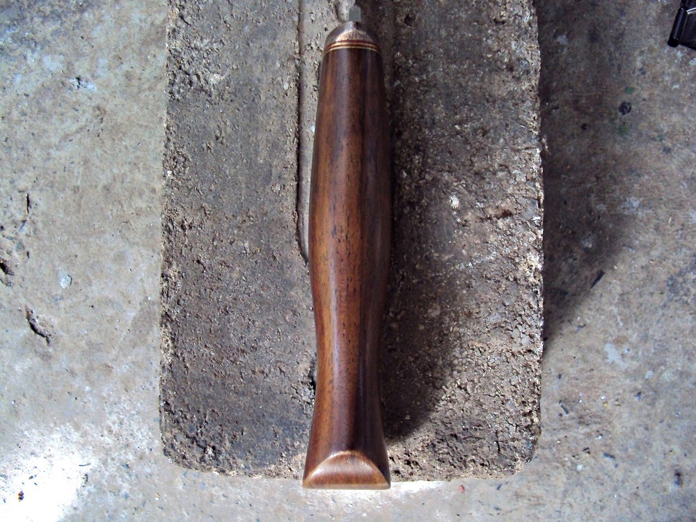 Рукоять:орех,состаренная медь,фибра,обработан даниш,карнаубский воск