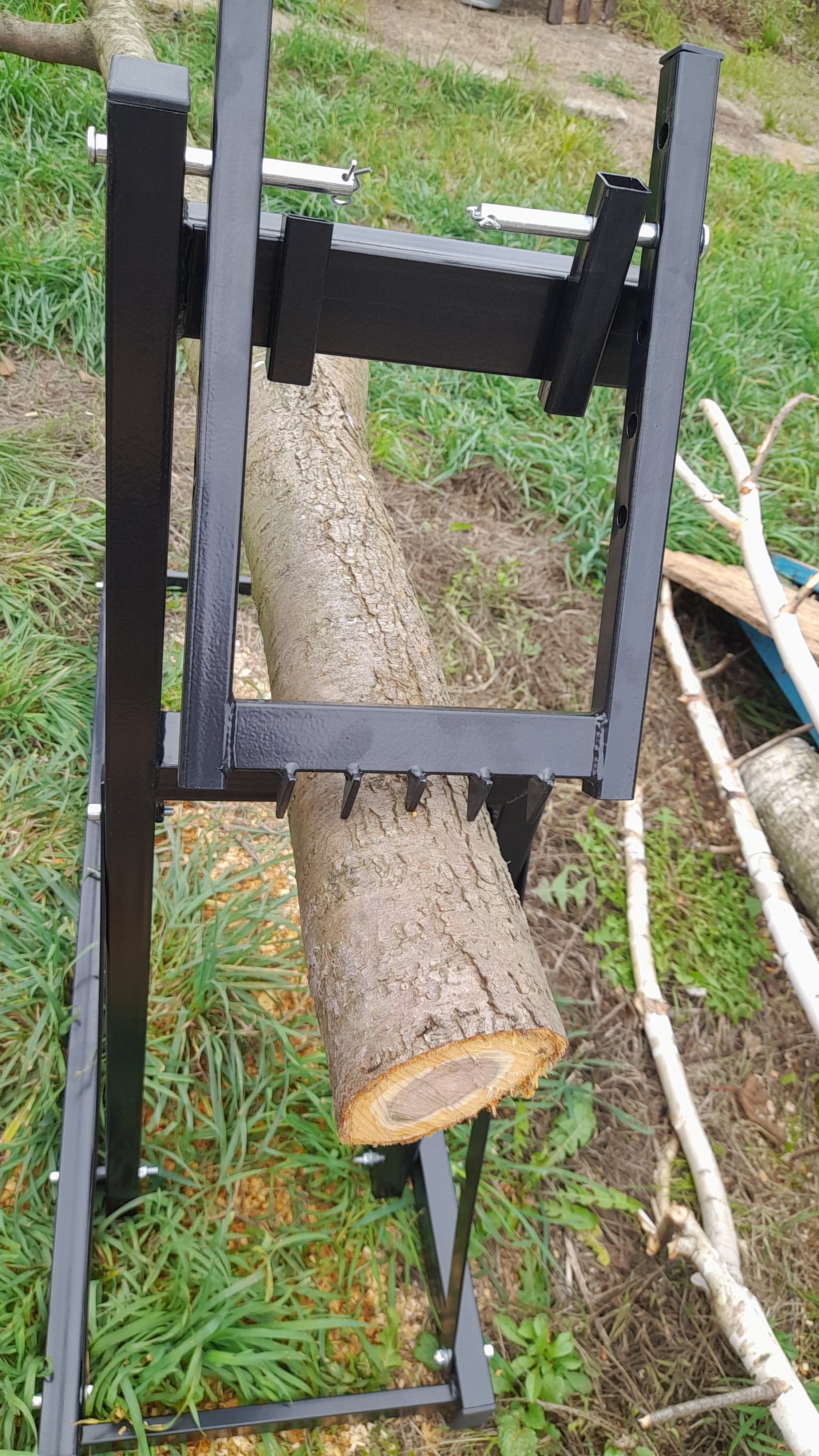 Треба ще одну підставку і тоді можна різати з довгої сторони поліняки. Не треба пересовувати за кожним разом.