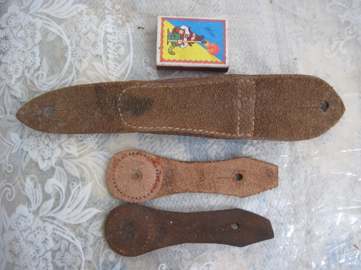 Здравствуйте. Подскажите, стоимость. Большая штука точно немецкая - есть орёл и надпись вроде "db 42" или "dlo 42". Под орлом "что-то там 95", не могу разобрать. Еще на кнопке надпись "stocko". На меньших штуках надписей нету, но кожа такая же и вырез такой же. Подумал - может комплект.