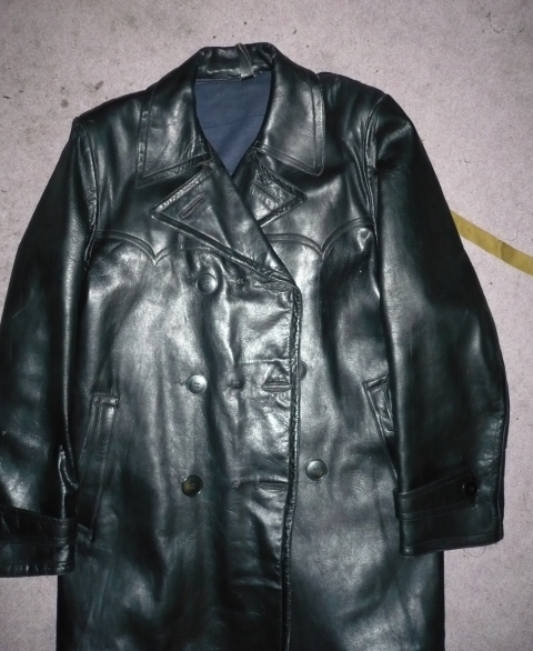 плащ кожаный в хорошем состоянии. немного мелкий дефект хтото перешивал пуговици и остались дырочки. цена 500грн. размер 52-54. рост 3-4.