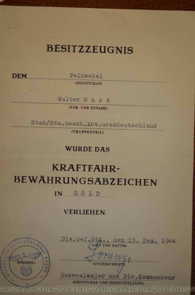 ну это гроссдойчланд, здесь грех не фуфлить - ценник ого-го какой можно задвинуть, хотя и подпись Лоренца найти можно и проконсультироваться по ней, это же не образец подписи какого нибудь ротного или комбата искать )) но возвращаясь к этому листу тоже выходит опасный лист полистал имеющуюся литературку по полевым дивизиям - 8-я была разбита в начале 43-го недалеко от Сталинграда и вроде как больше не восстанавливалась. на листе дата конец 44-го - бред какой-то получается может у них какие корпоративные законы были писать название старой части ... что такое Div.Gef.Stand?
