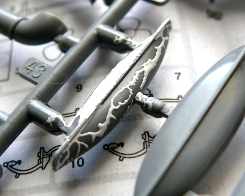 "Звездовский" акрил, белый, "свежий" (годен до 2013). И так "плывёт" как с жирного. О нормальной покраске речь уже не идёт... Пару лет назад собирал Ju-87B2 "Pвездой" - было ок, а сейчас такой кошмар с краской, притом, со всеми купленными оттенками.