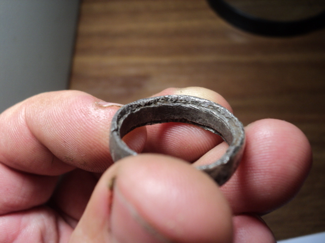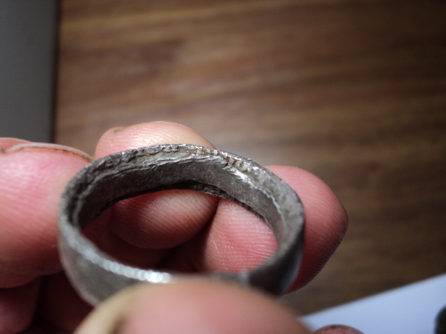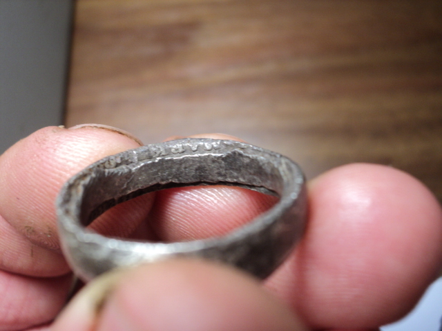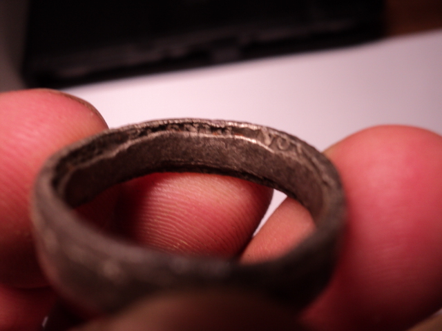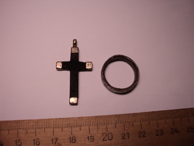 Выкопали сегодня в лесу самопальные крестик и кольцо (найдены не рядом). Фигурка с креста отсутствует, остались клепки и отверстия. Крест их металла с накладками то ли черная пластмасса, то ли черное дерево. Кольцо судя по всему делали из монеты и доделали. Внутри видны остатки надписей. С одной стороны "ALBERT KONIG VON ?ACHSEN". Где вопросительный знак буквы не видно. С другой стороны видно слово "MARK". Можно ли узнать какая это была монета?