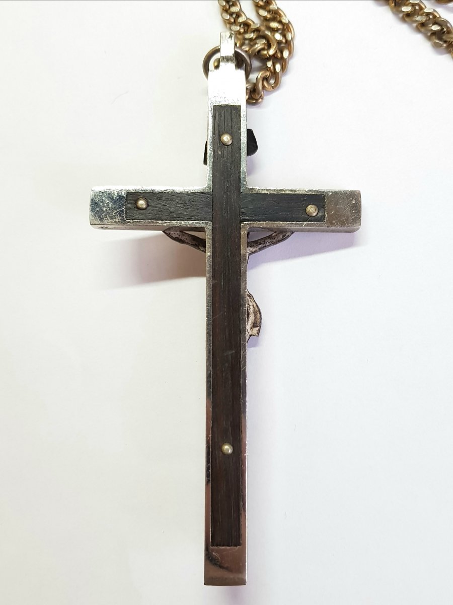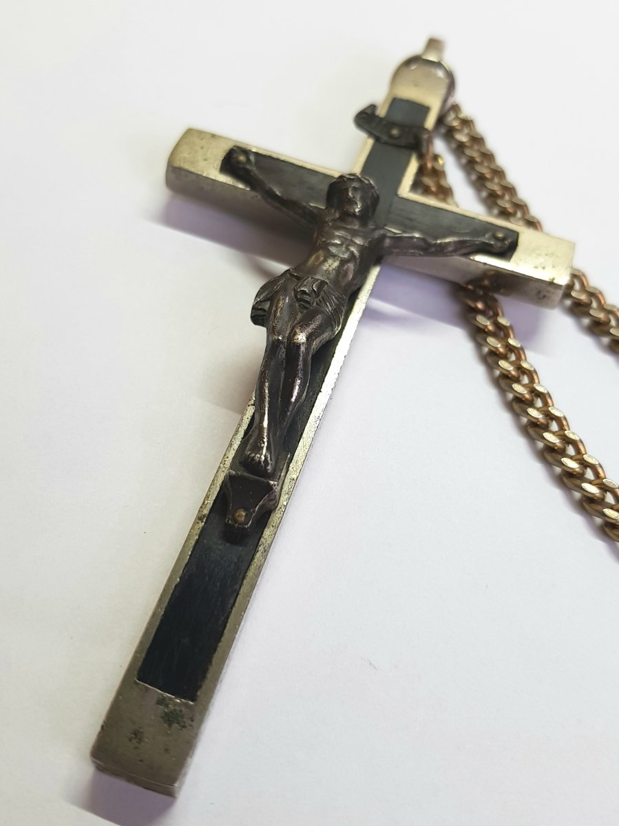 обычный католический крест , который могли носить католические священники , монахи монахини некоторые особо набожные прихожане капелланы( среди прочих , но не исключительно) Разновидности этого креста - частый гость на АУКах. У Вашего есть несомненное преимущество перед соперниками - сохран и размер цены устоявшейся нет , вот поискал что-то подобное , дальше устал https://auction.violity.com/95327833-starovinnij-hrest https://auction.violity.com/95169271-kresty