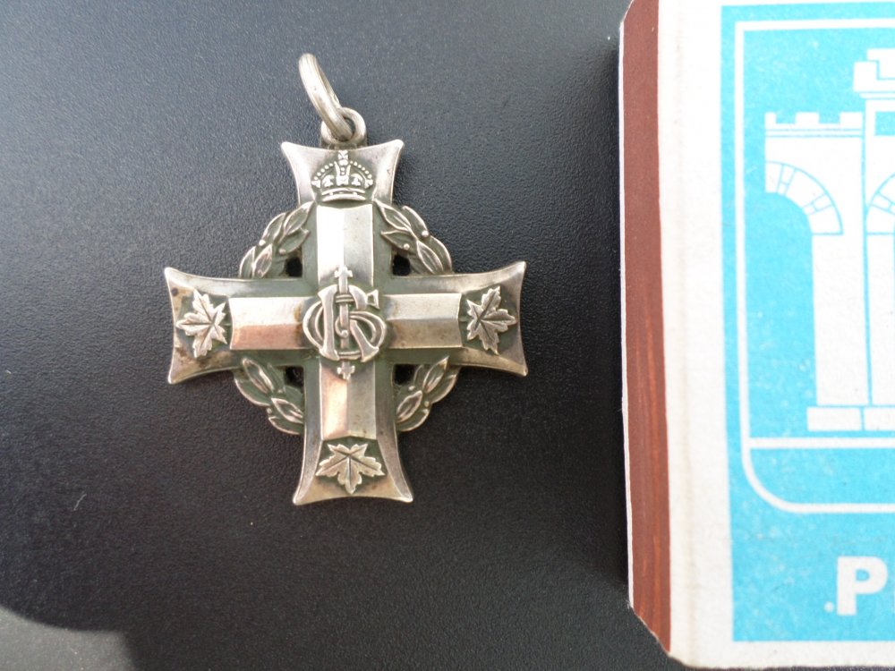 Поздравляю, шикарная находка!Судя по номеру-выдача после ПМВ.Раритет!Сделан по мотивам британского Военного Креста, вместо боковых и нижних корон Георга-кленовые канадские листья и добавлен центральный венок.Серебро.