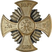 Доброго! Имхо, знак на головной убор Лейб-гвардии 4-го стрелкового Императорской Фамилии полка. Погуглите, обсуждаются похожие в серебре и в бронзе, например: http://www.sammler.ru/index.php?showtopic=71977 http://www.sammler.ru/index.php?showtopic=158665 Может, будут еще мнения. С уважением,