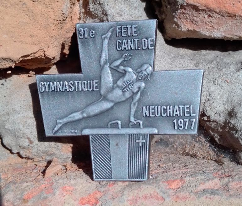 Памятный знак кантонального гимнастического фестиваля 1977 года в Невшателе (Швейцария).
