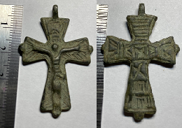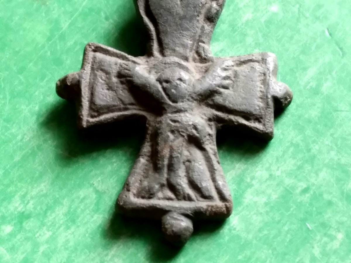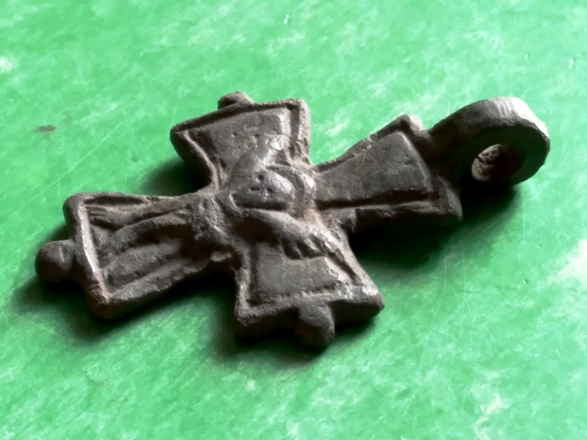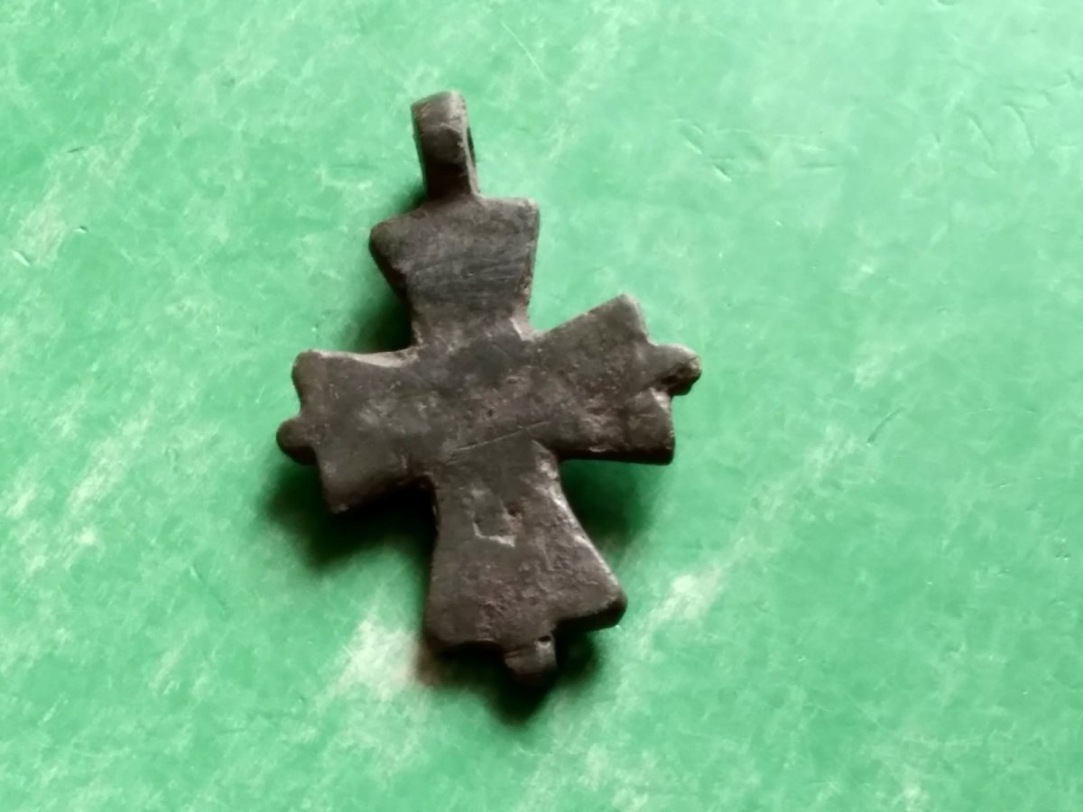 Здравствуйте такой крестик попался. Что можете сказать по периоду.Спасибо. Ну и стоимости. Спасибо. Метал бронза.Помыт водою без химии.