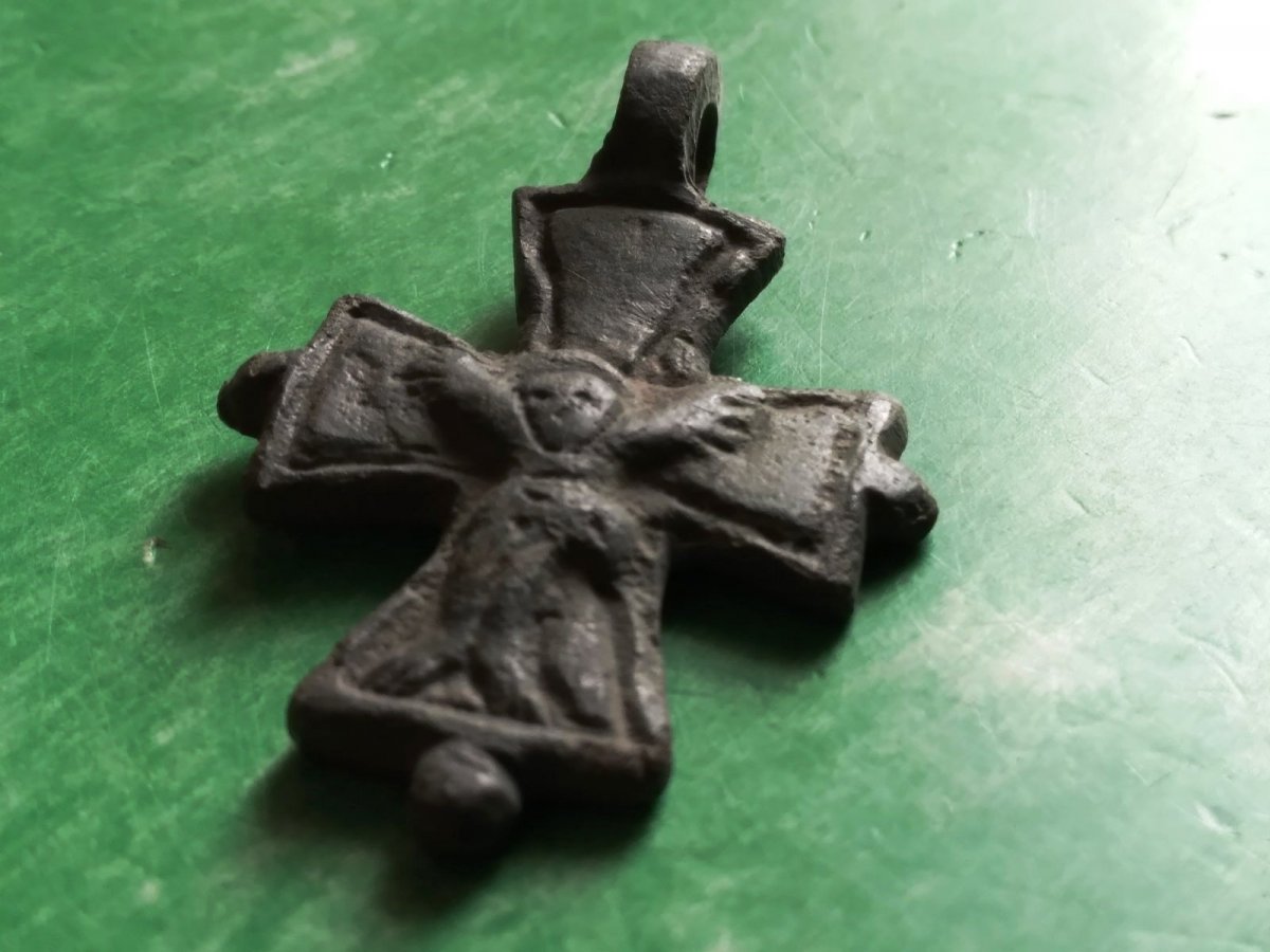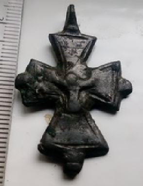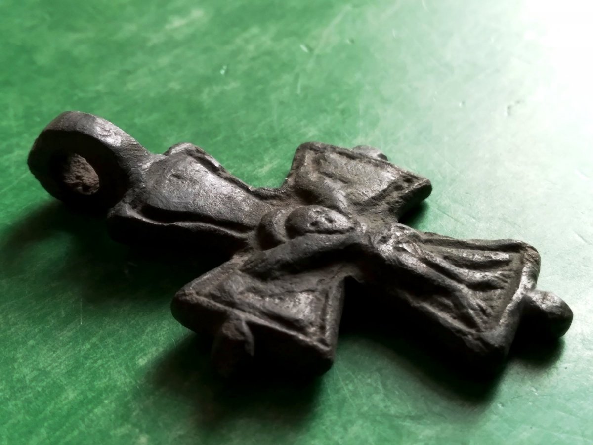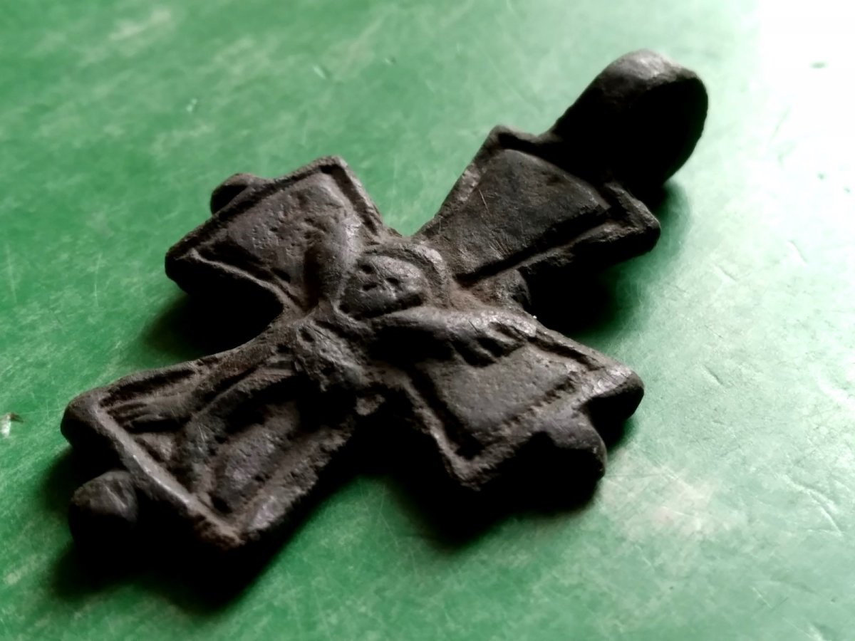 Здравствуйте такой крестик попался. Что можете сказать по периоду.Спасибо. Ну и стоимости. Спасибо. Метал бронза.Помыт водою без химии.
