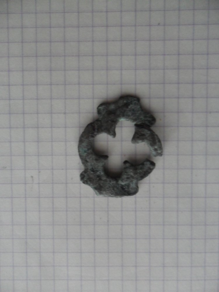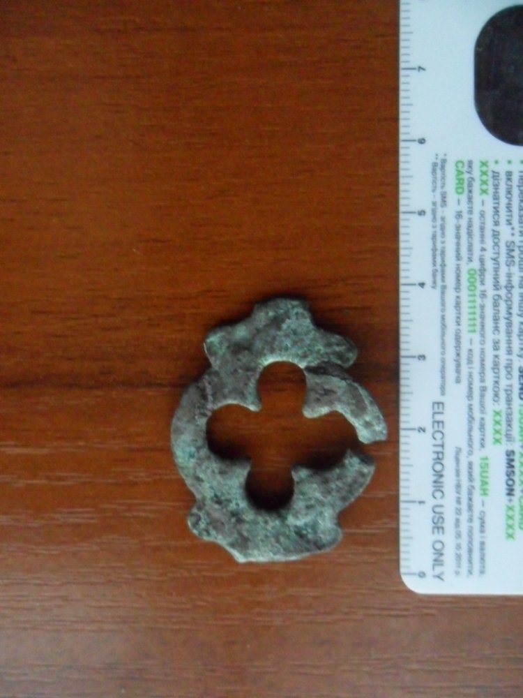 камрады помогите определить находку что это,и представляет какую нибуть ценность?.найдена на старом хуторе,сопутки не было.материал скорее всего медь,розмер видно на фото.было ещё ушко но отламалося и потерялося.