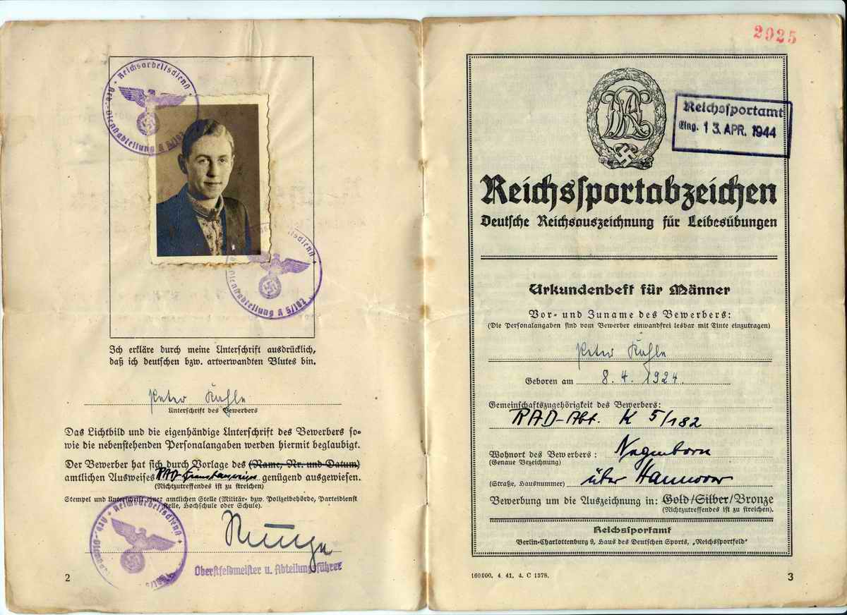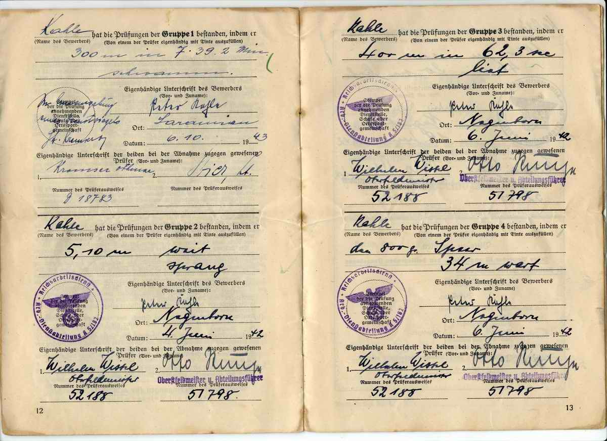 Документ на ДРЛ выставленный 5 мая 1944 г. с результатами сданных зачетов бойца РАД. Прекрасный сохран. Всего 65 Евро + пересыл.