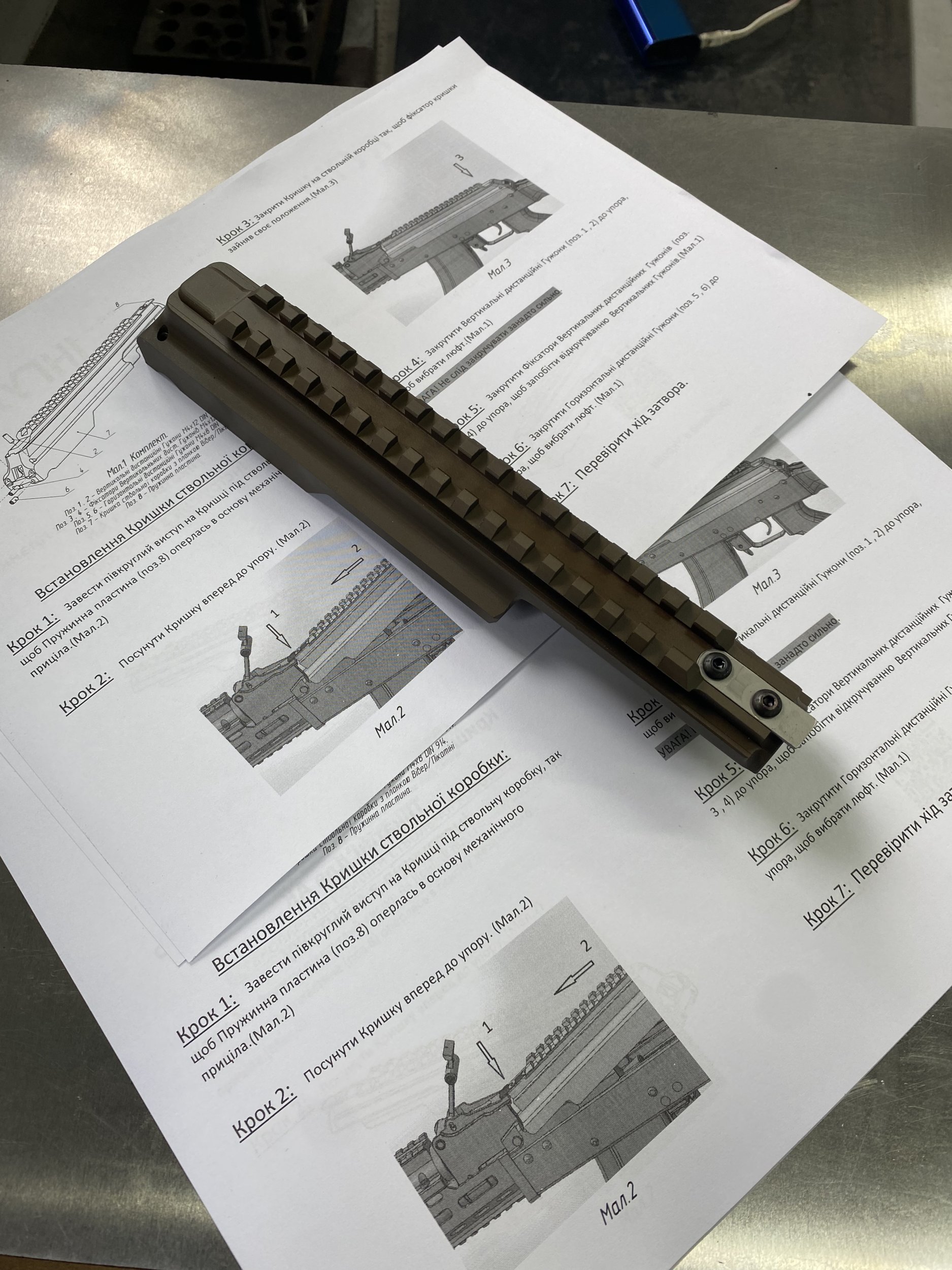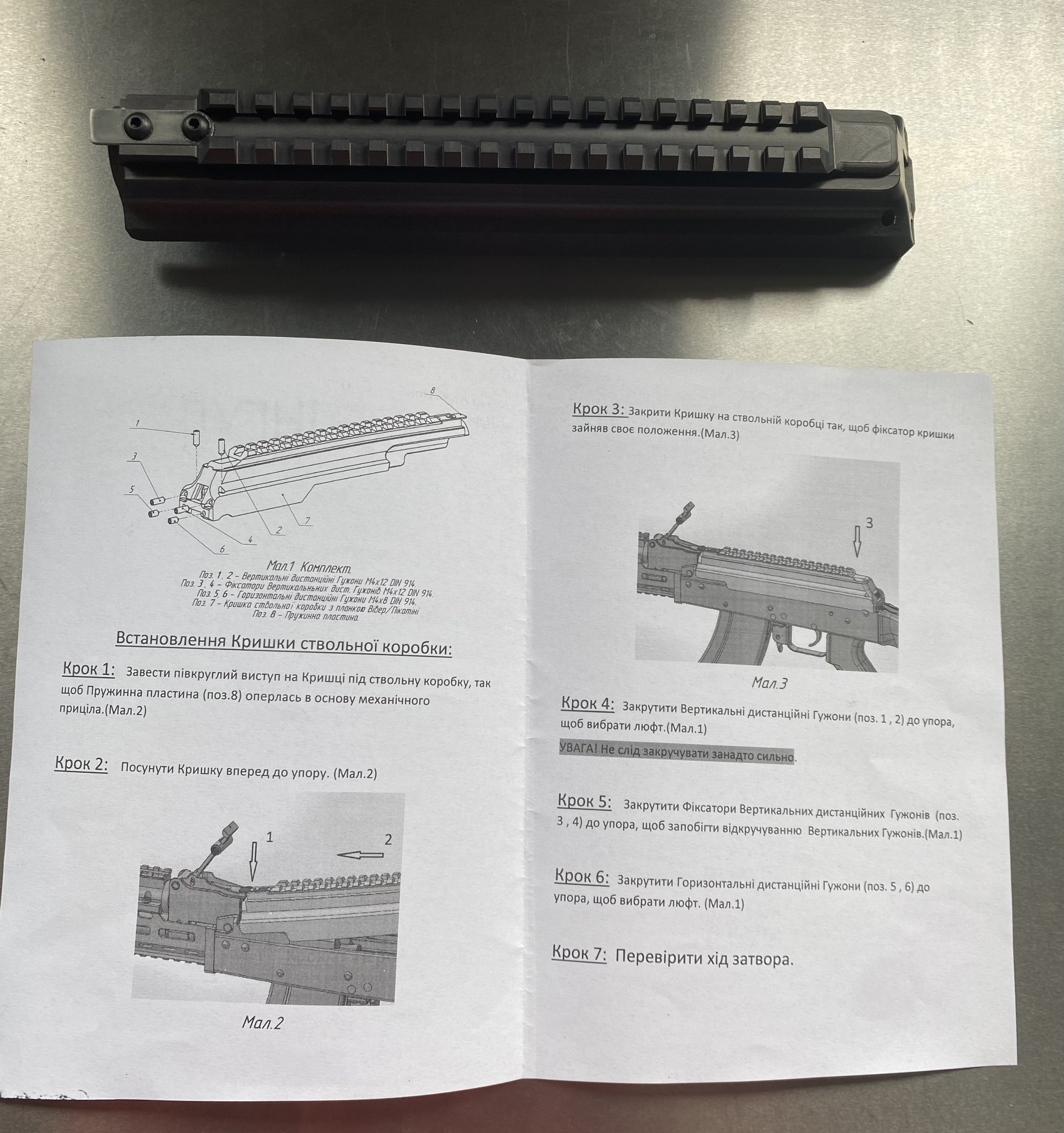 Кришка ствольної коробки Вільно встановлюватися на всі автомати та карабіни АК - серії замість штатної без будь-яких доробок. Крім вкороченого аксу Та старого АКС з складним прикладом. виріб фрезерований з алюмінієвого сплаву, корпус кришки і планка - єдине ціле. покриття – анодування. Кришки випробовані побували два варіанта в хороших людей , можна замовляти. Вартість 4500грн. В комплекті : Кришка, гужони, інструкція, демфер віддачі. Доповнення На вашому АК має бути уступ Обведено зеленим, в який сідає кришка. Перед замовленням будь ласка перевірте
