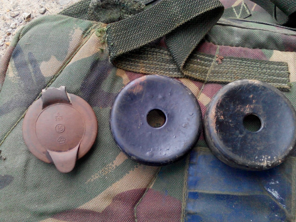 Ппиветствую. Две одинаковые черные штуковины - от немецких наушников вроде как.