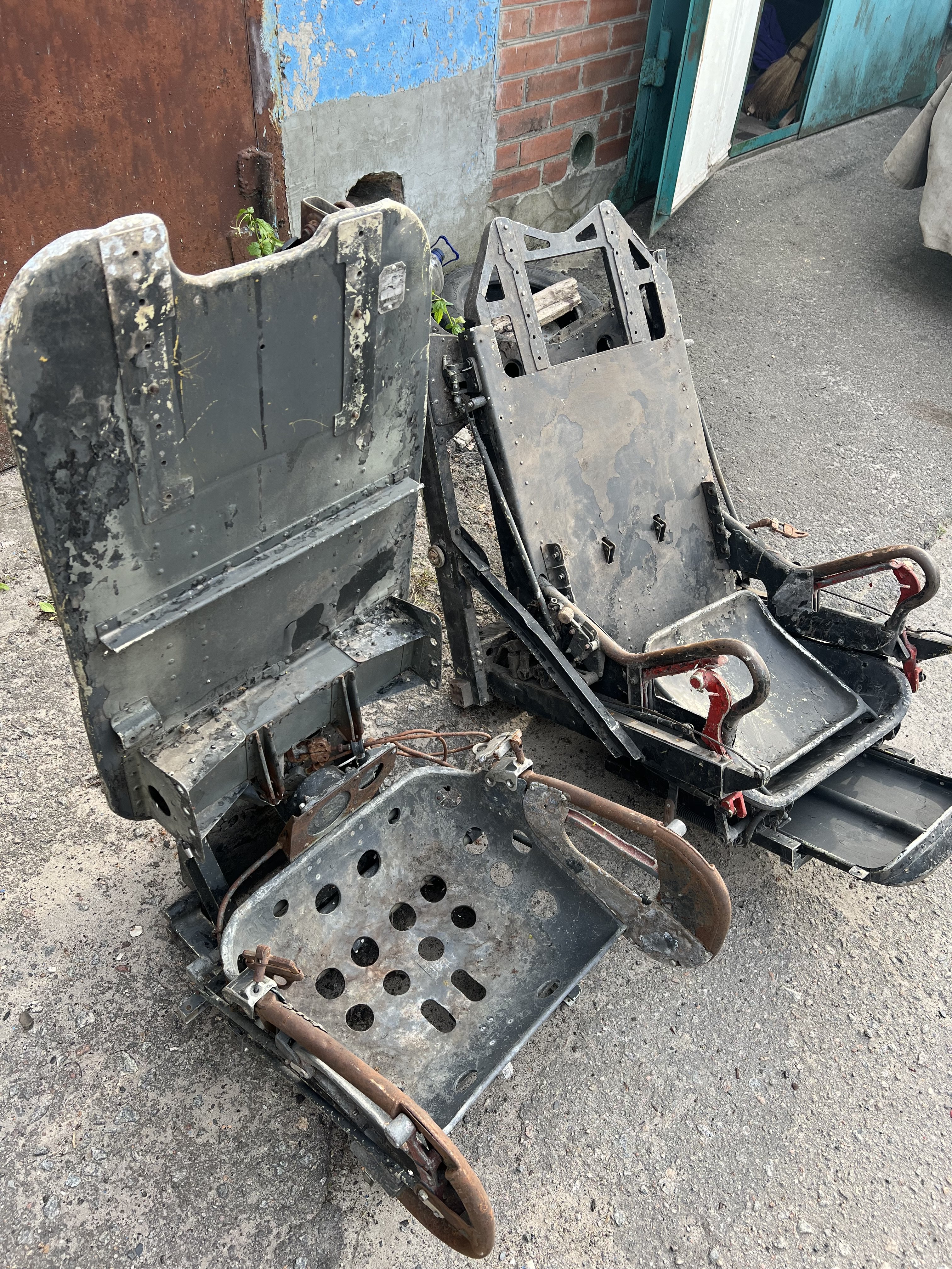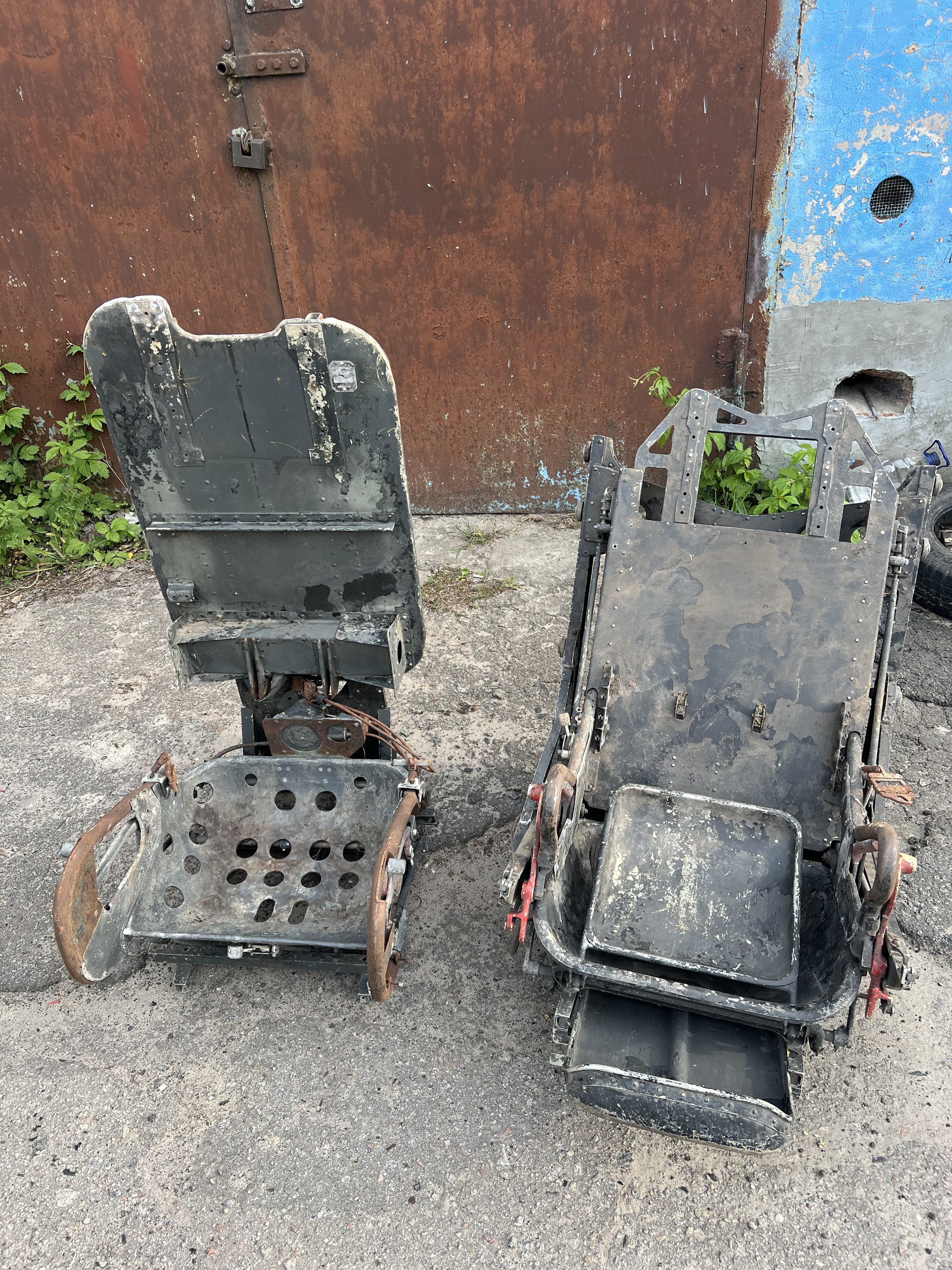 Здравствуйте, которое слева, с перфорированным "подпопником", сиденье стрелка-радиста Ту-16. Правое - сиденье кормового стрелка, тоже Ту-16.