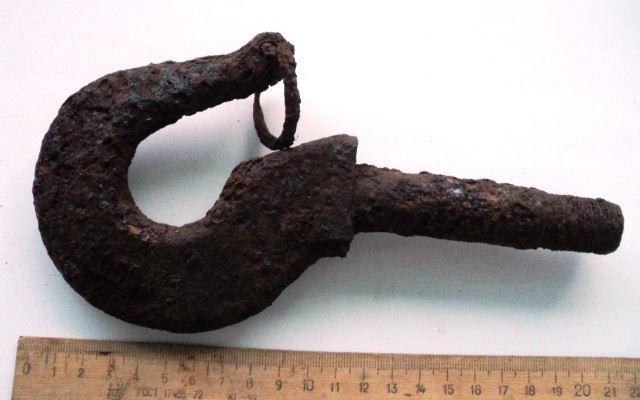 Вырыли немецкий маленький крюк. Клеймо 650 кг. От чего такой малый?