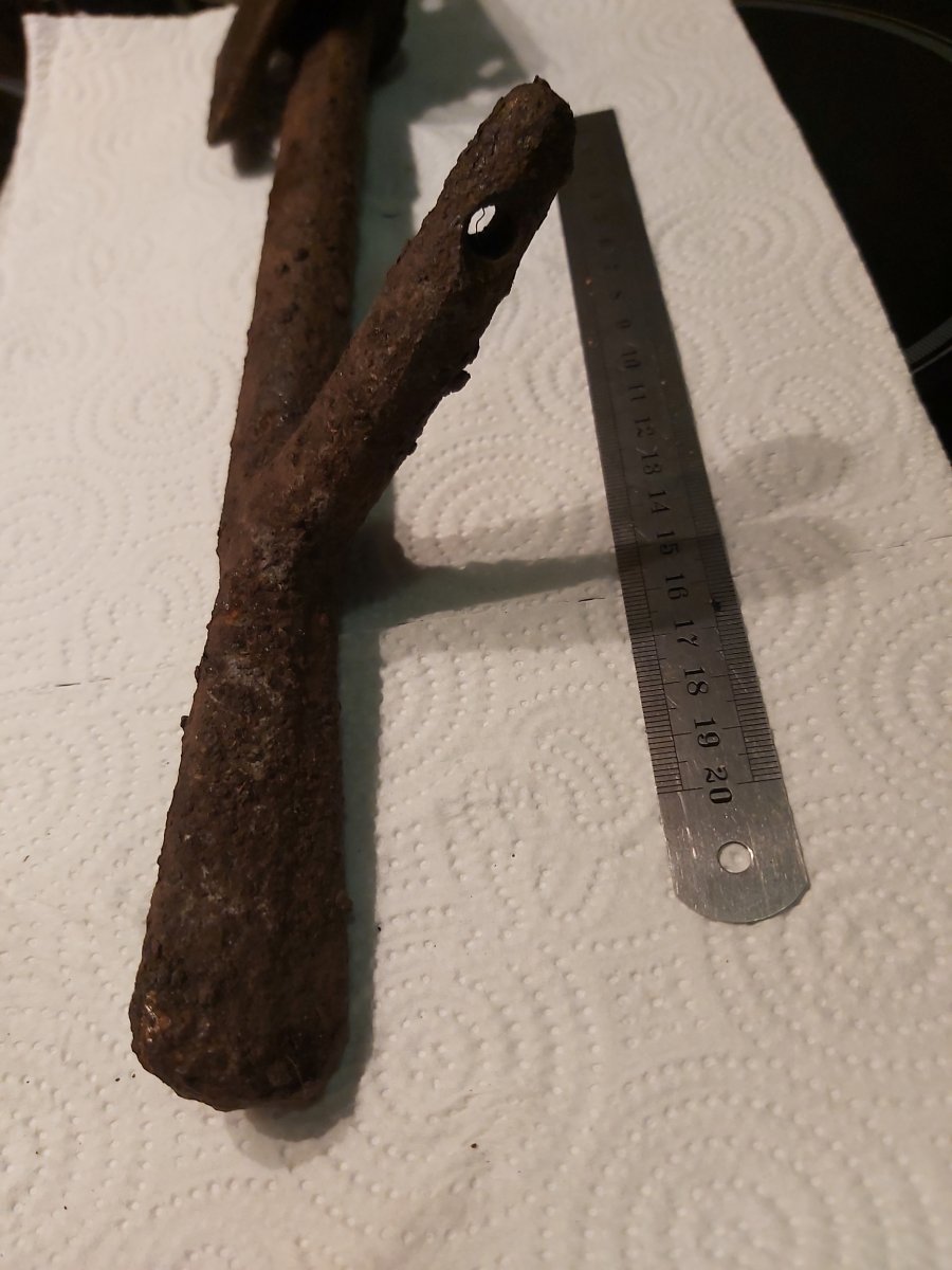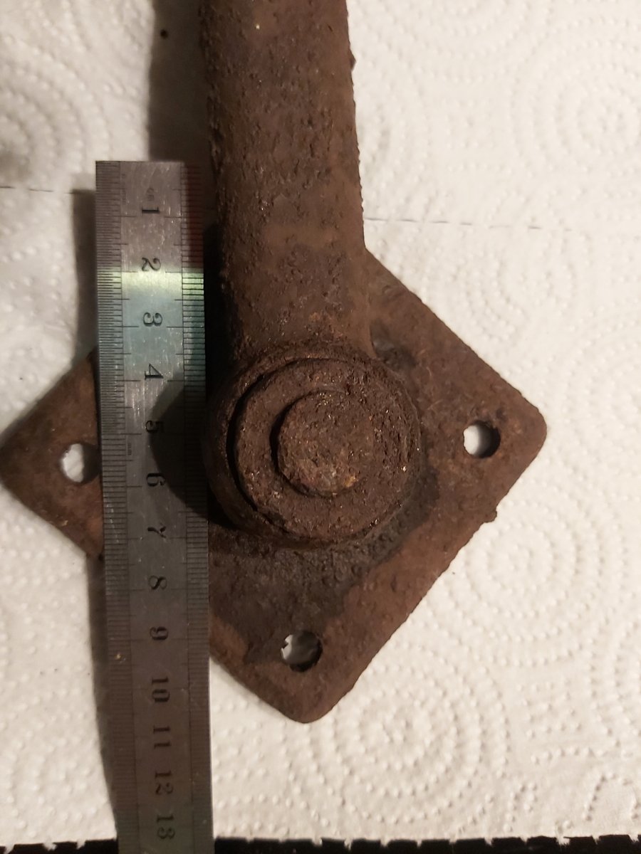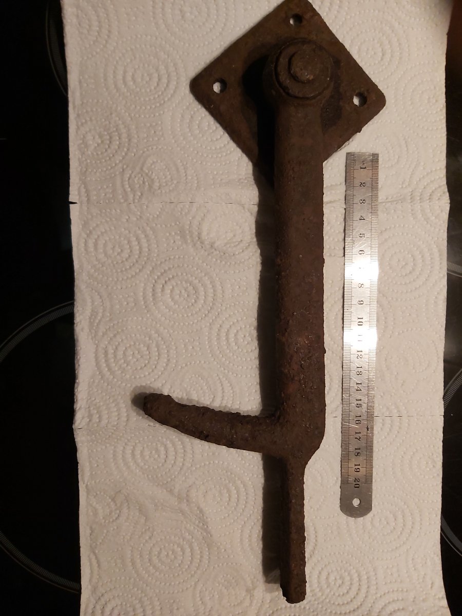 Добрый вечер. Рядом с военной дороги попался такой крюк. Тяжелый, стальной. Длинна крюка 30 см. Крюк вращается на оси прикрепленной к квадрату. От чего может быть? Заранее спасибо. 16382133507335613341739819174061.jpg 16382134138796301984928355291580.jpg 16382134778712586792508654943188.jpg 16382135088604106684932986115295.jpg 16382135913546079708649971140880.jpg