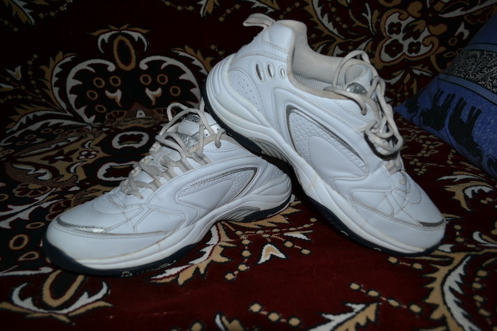 Кроссовки Hi-Tec. В целом хорошее состояние, но есть дефект на одном носке, чуть-чуть надрыв и нитка разошлась, в остальном без дефектов. Размер указан 43, длина стельки 27 см. Стелька не съемная. Ценам 370 грн.