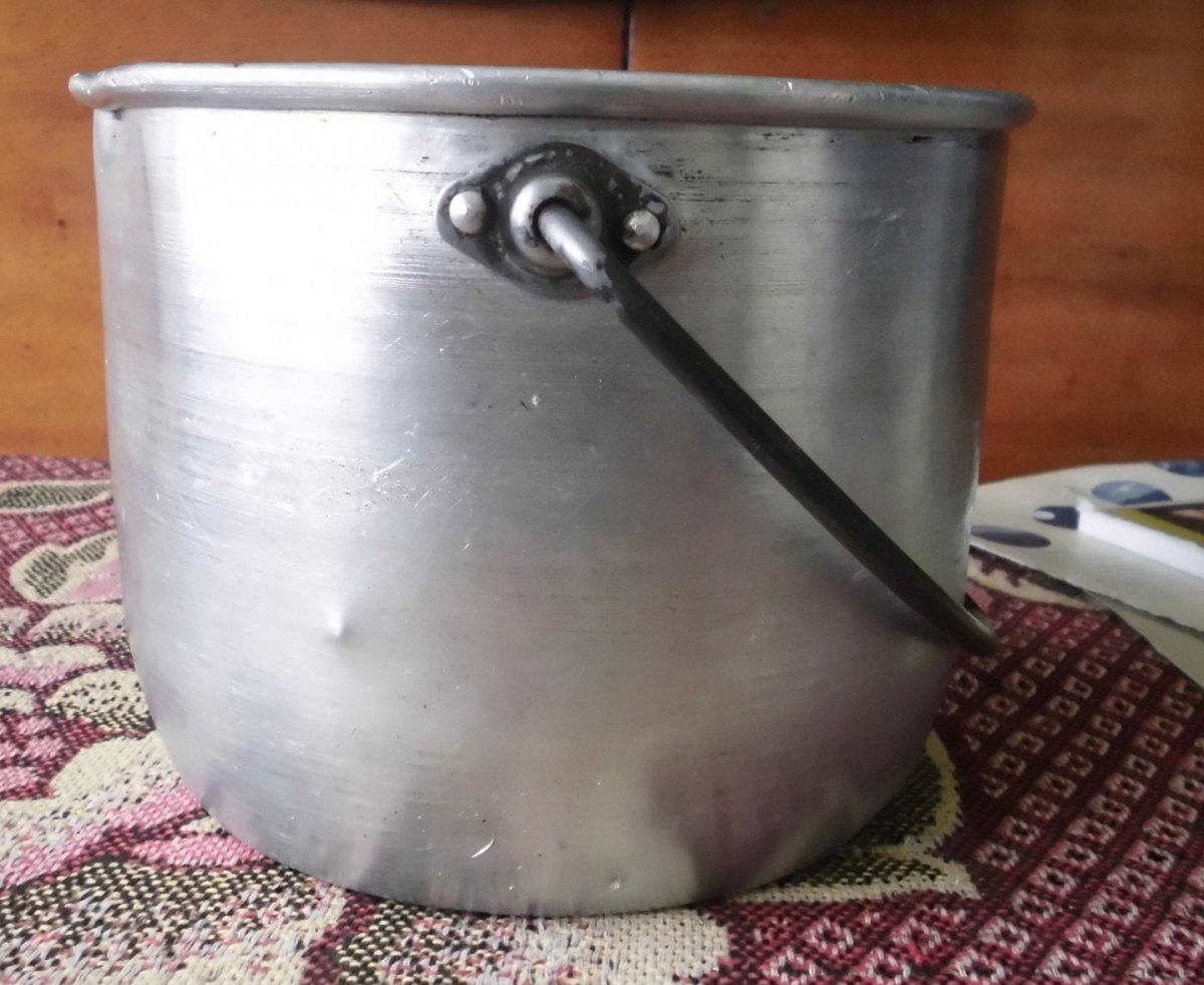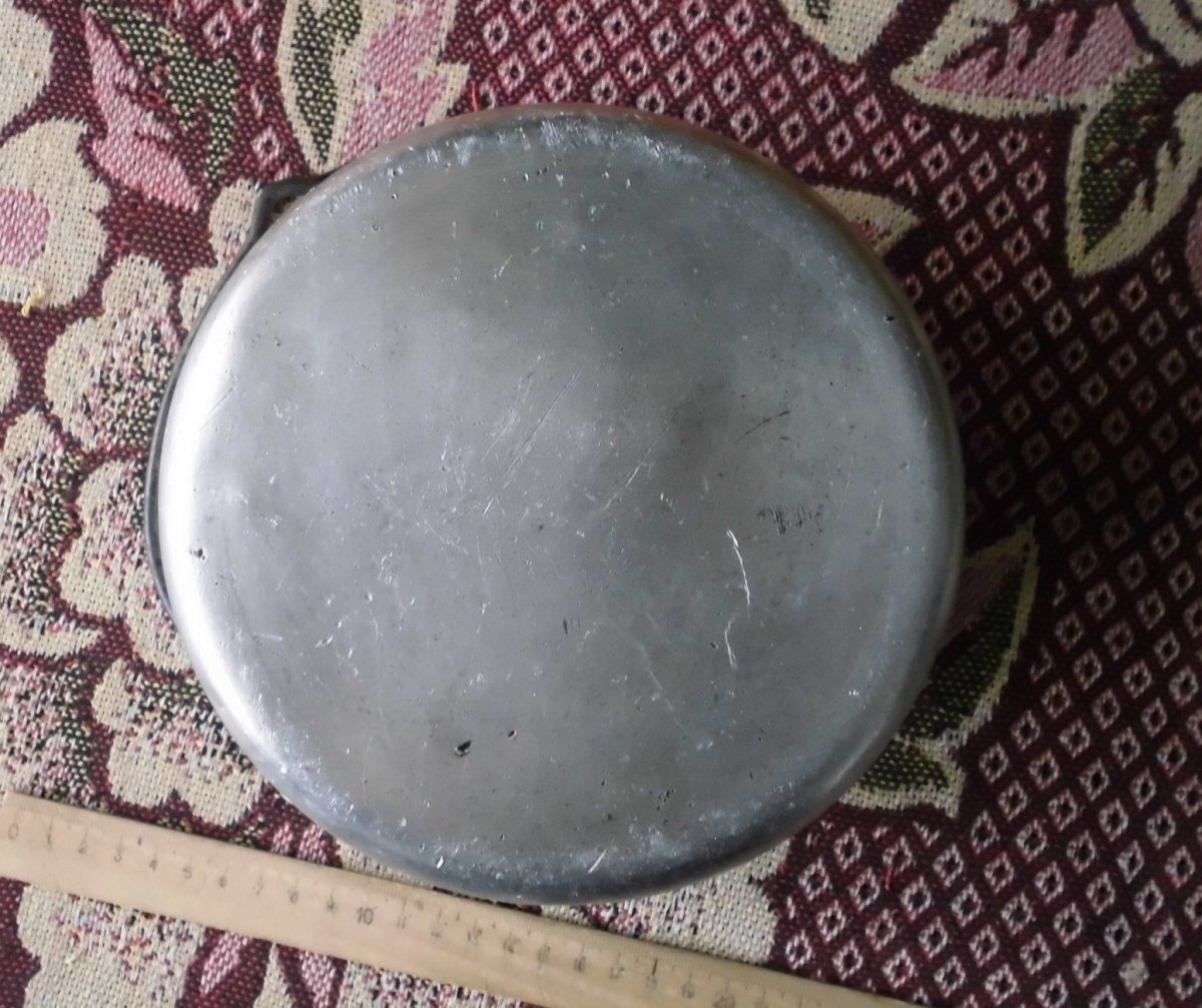 Продам круглый алюминевый котелок . СССР. Состояние по фото , б/у . Набирал воду не течет. Котелок использовался по назначению, сильно не вымывал. КАК есть. Вопросы , предложения в личку. Оценивал : https://reibert.info/threads/kruglyj-kotelok-turisticheskij-poslevojna-pomogite-ocenit.764015/ цена 100 гривен + почта.