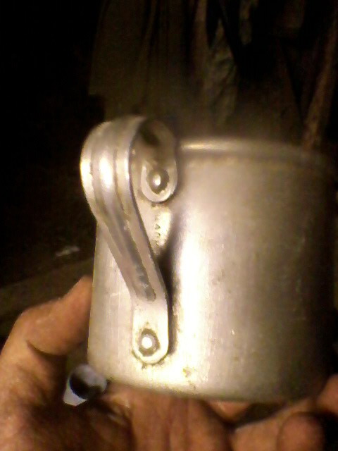 Доброго времени суток,камрады!Нашёл в деревне в сарае вот такую кружку,алюминиевая,ручка "капелькой",клейм не наблюдаеться,возможно стёрты от долгой эксплуатации:).Собственно вопрос-кружка "на войну" или послевойна?Прошу прощения за качество фото.С ув.Полищук.