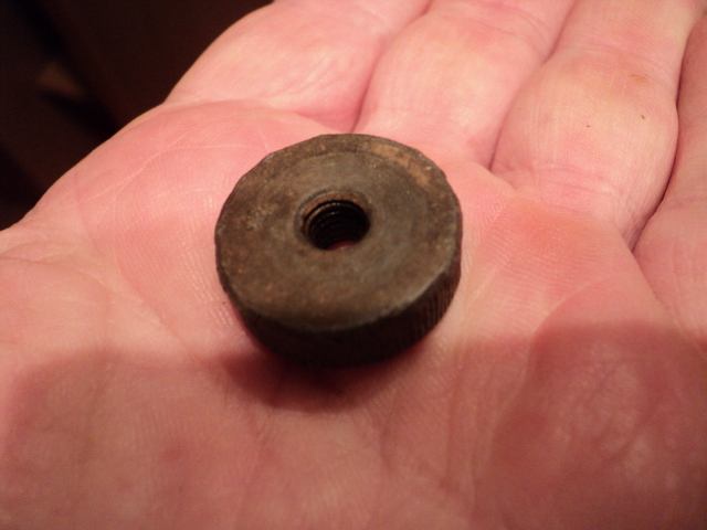 На втором фото гайка-барашек - от совдеповской мясорубки, закручивается со стороны ручки. Попадалась на глаза недавно во время ревизии хлама на чердаке.