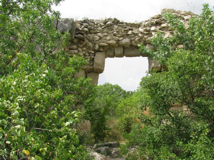 Чуть ниже крепости находятся остатки пещерного монастыря Челтер-Коба. Сейчас там живут и восстанавливают монастырь монахи. Основан пещерный монастырь в девятом веке нашей эры.