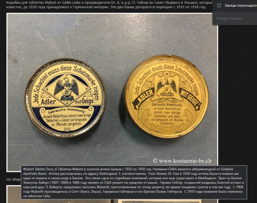 Взято отсюда : https://www.kostueme-bs.ch/index.php/museum/zivile-museumsstücke/260-blechdoesen-gaba-wybertli.html